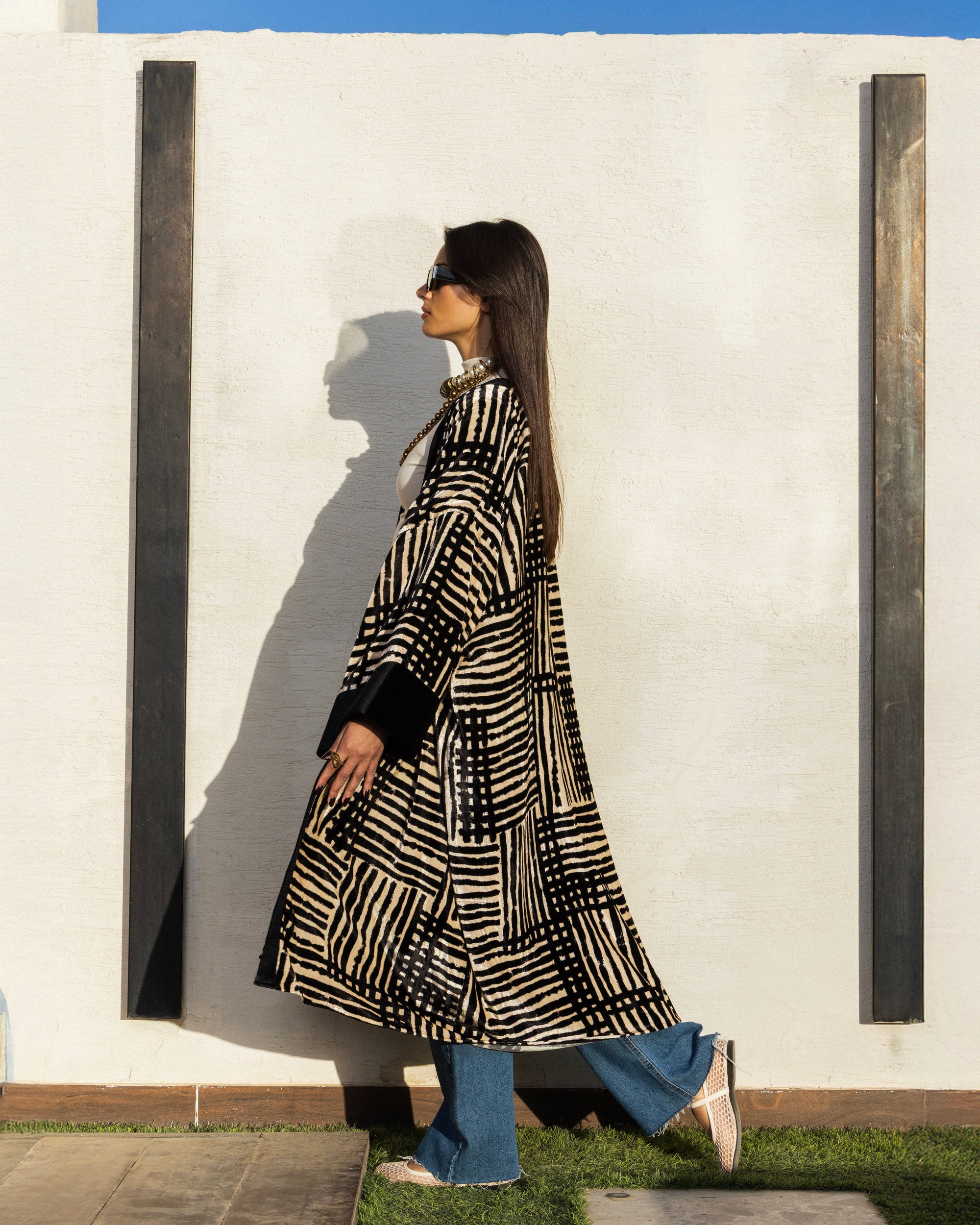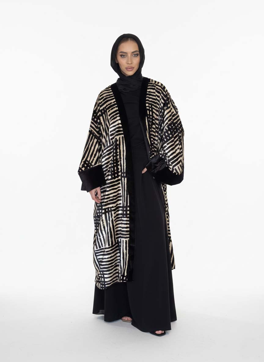 STRIPED VELVET KIMONO