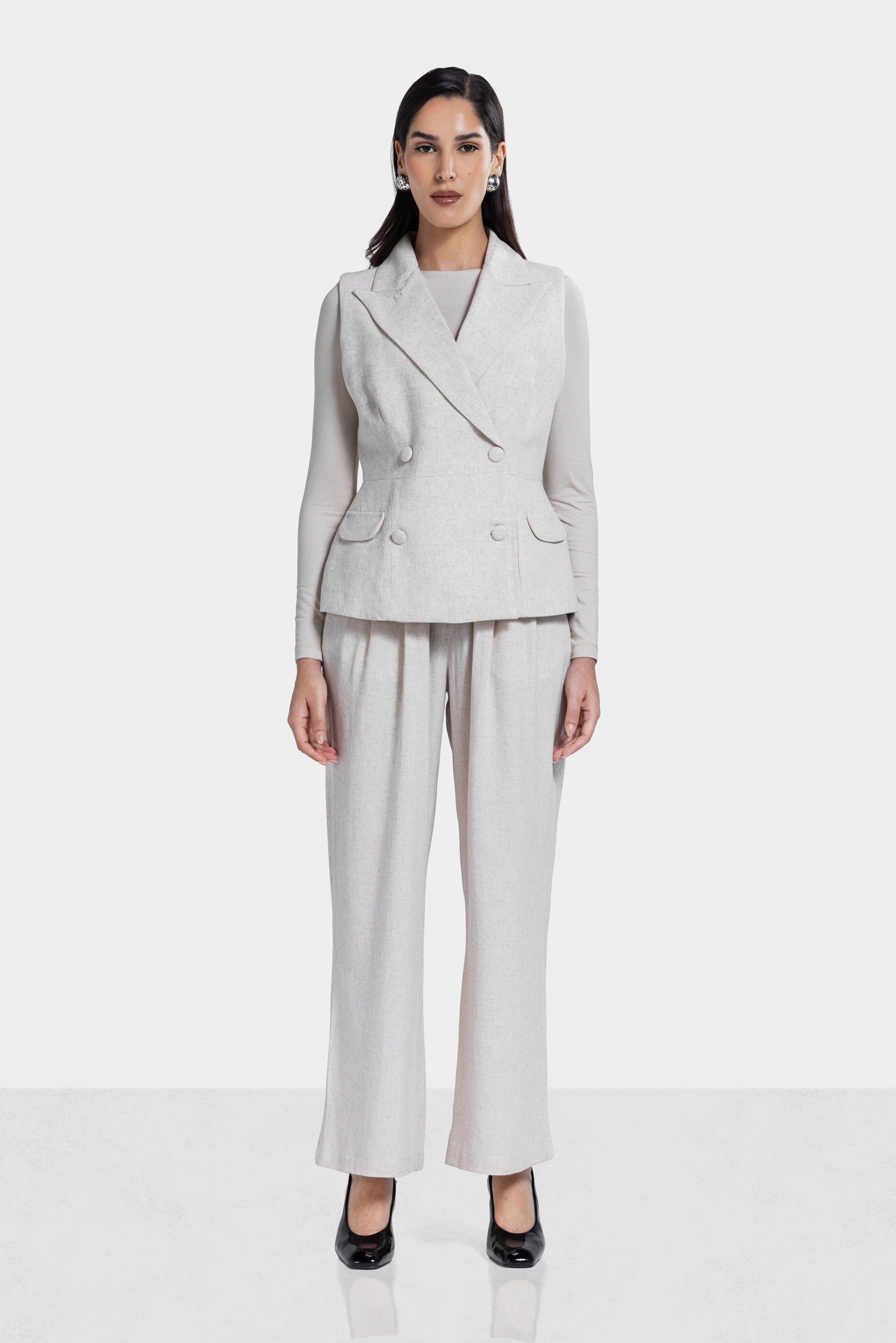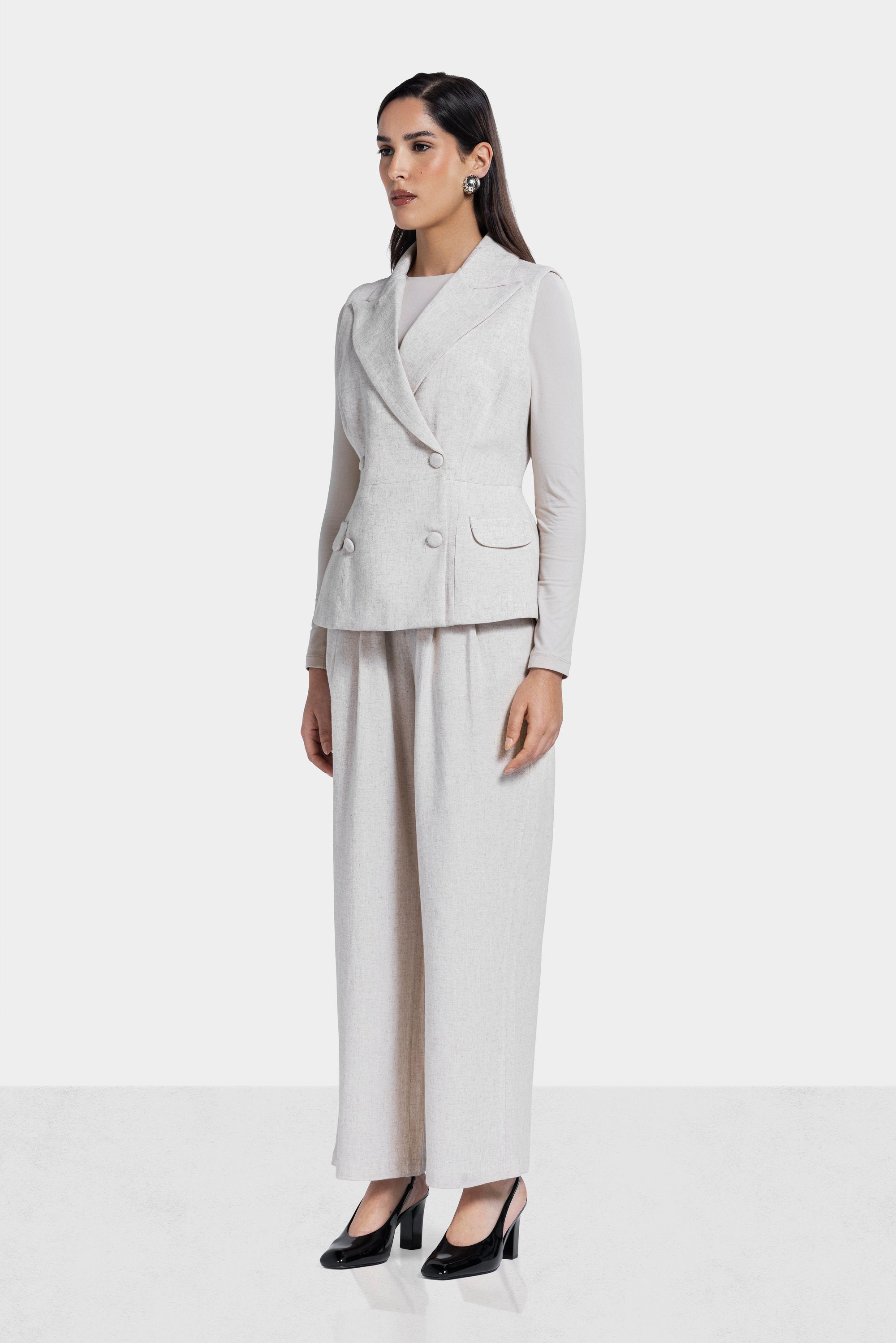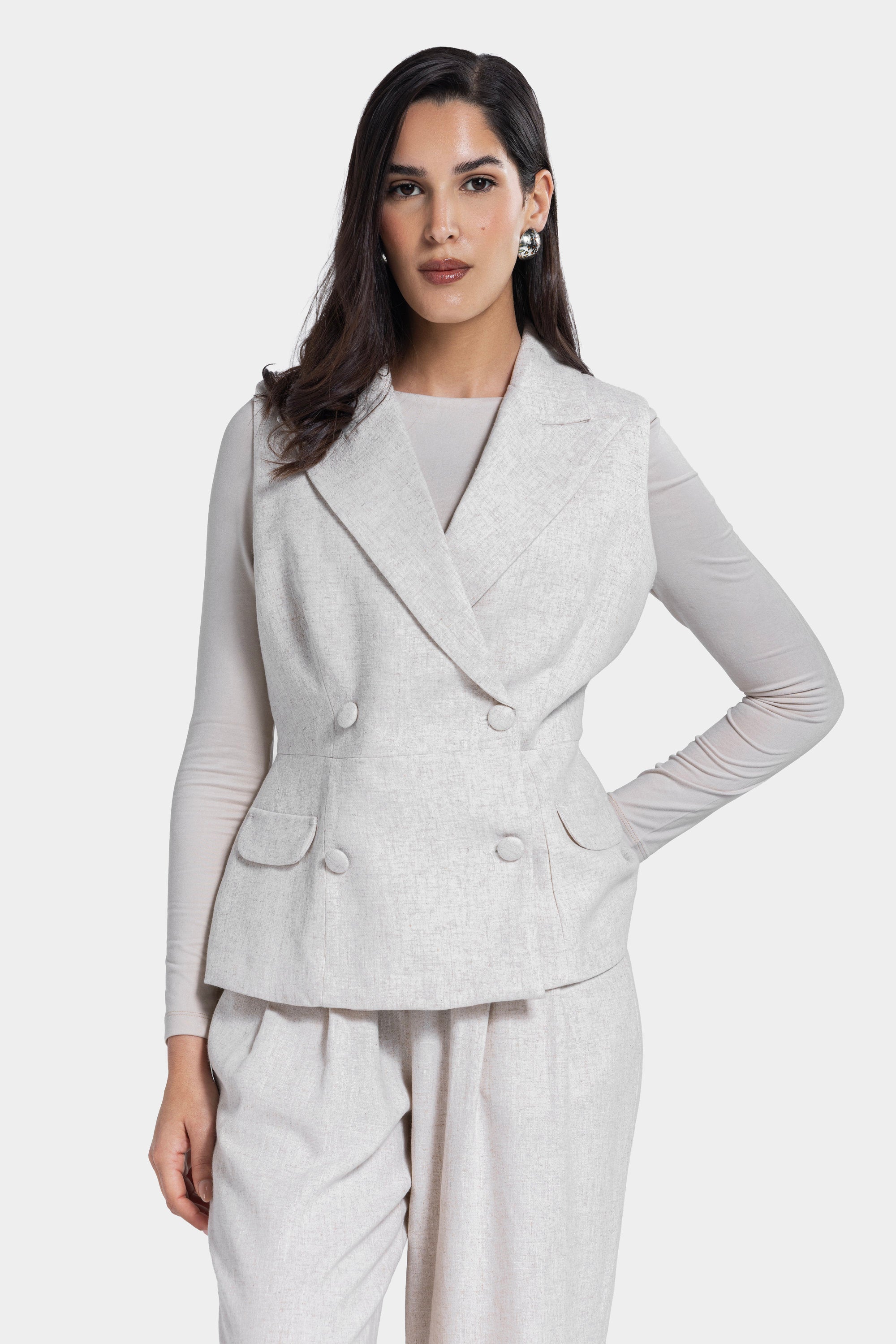 DOUBLE BREASTED LINEN VEST -BEIGE