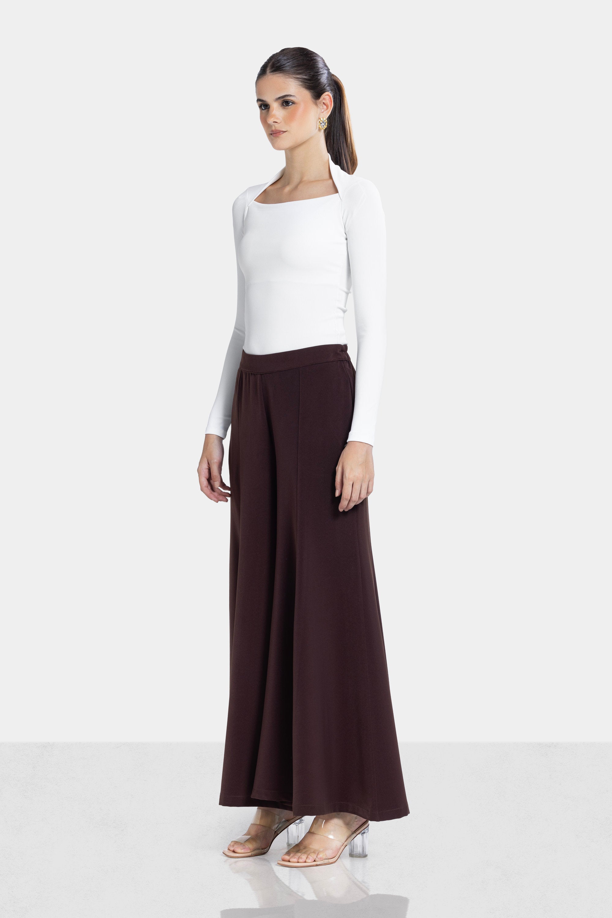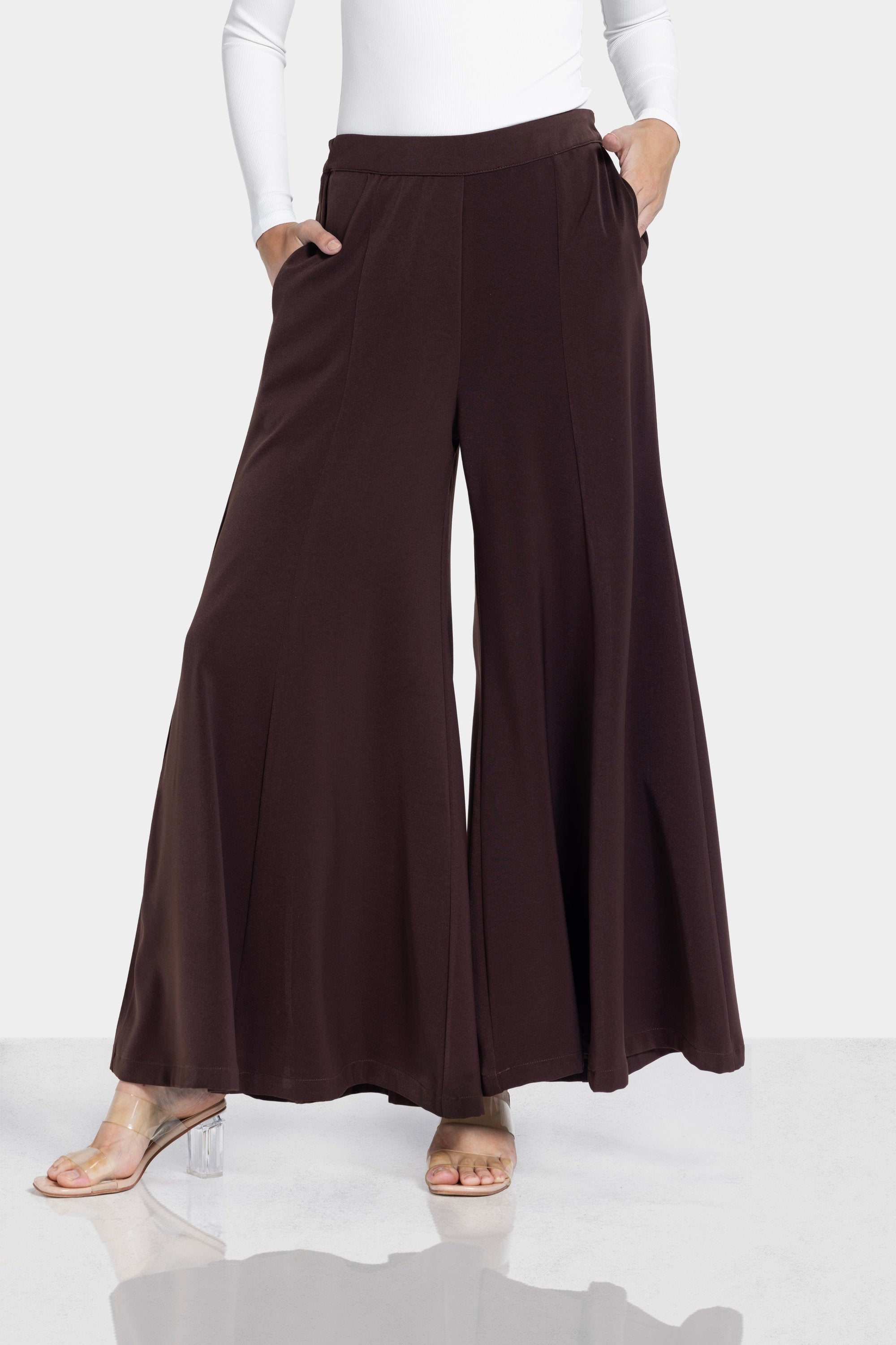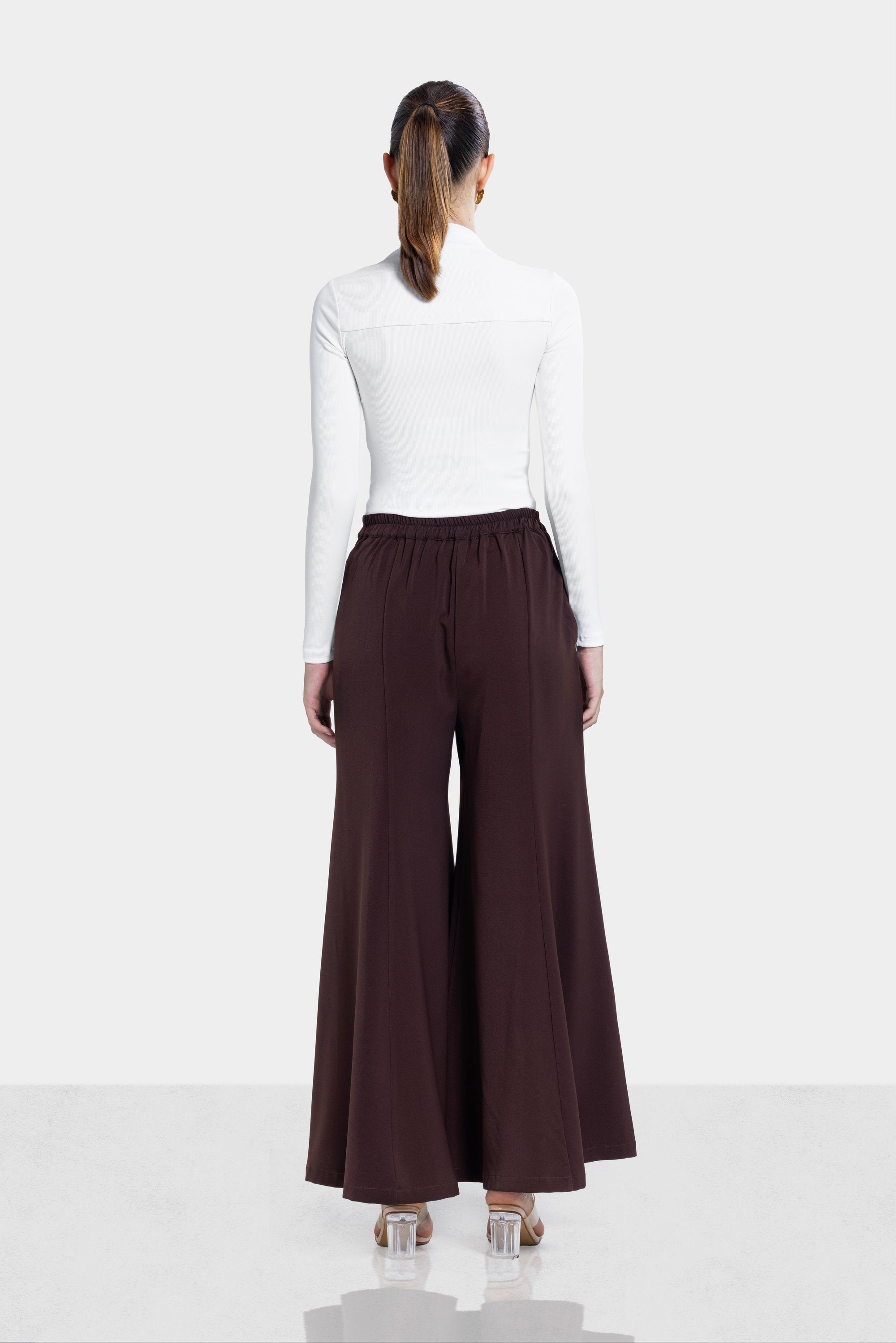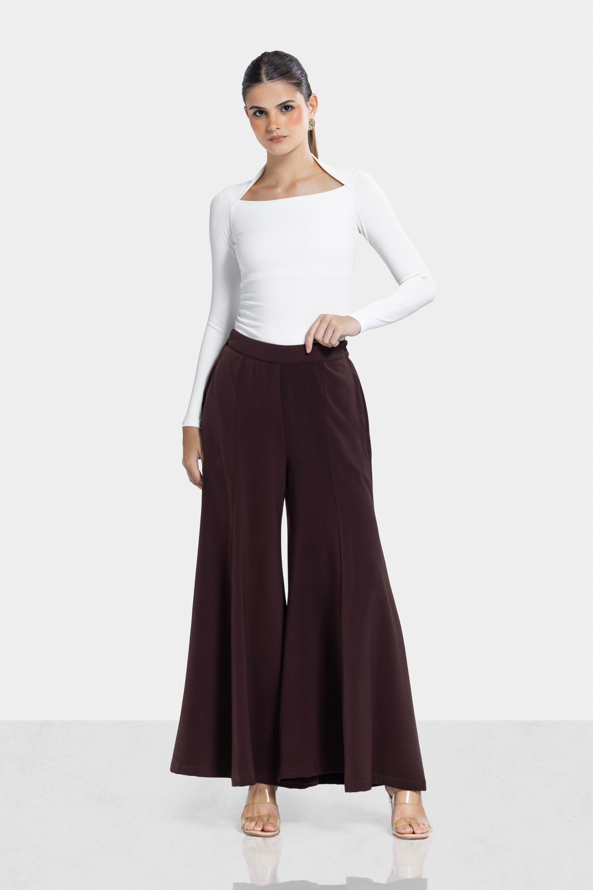 WIDE LEG FLARE PANTS -BROWN