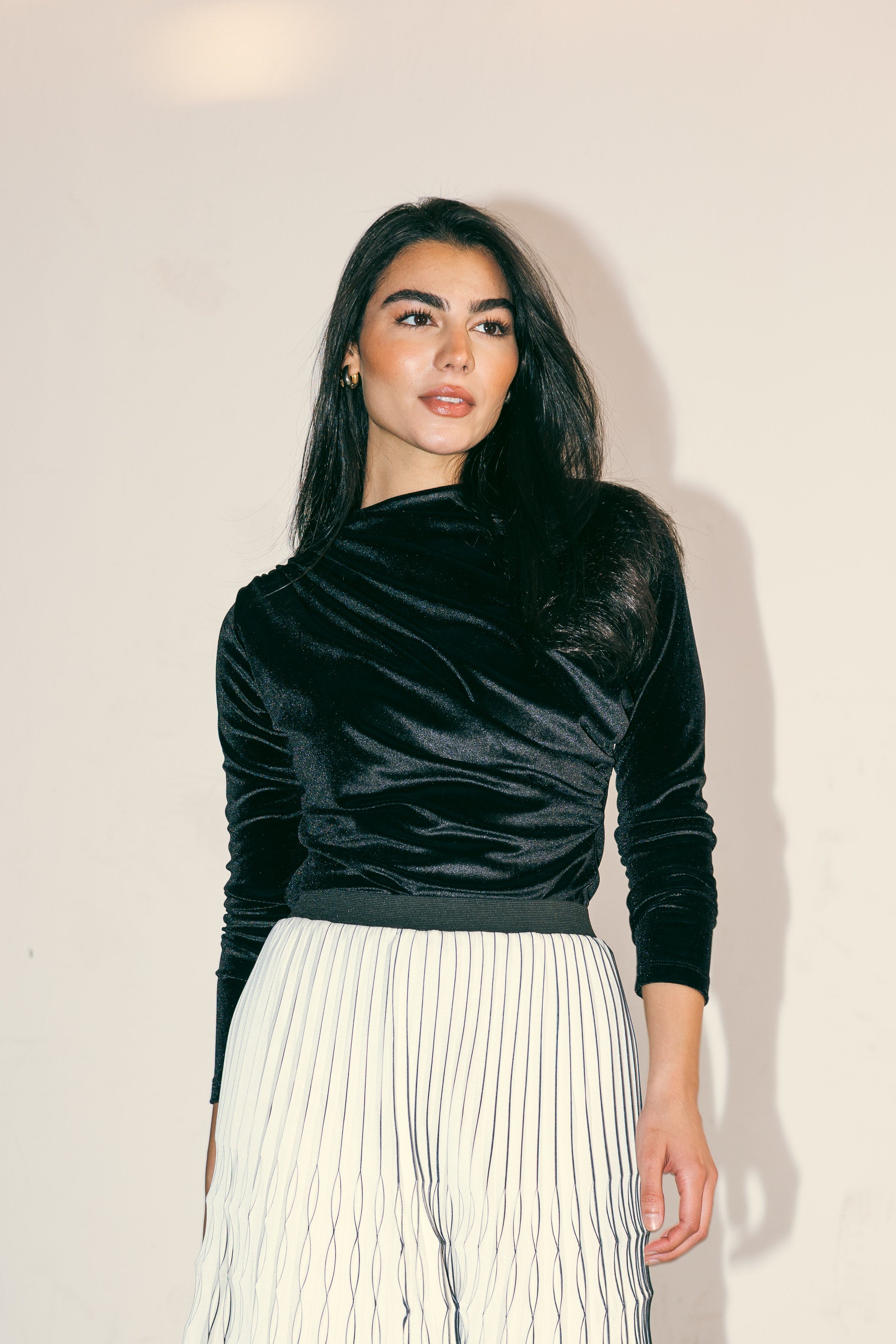 The Velvet Drape Top is designed to elevate everyday and evening looks with its luxurious velvet texture and elegant draped detailing. Featuring a soft sheen and fluid silhouette, this top delivers a refined statement while remaining comfortable and flattering.