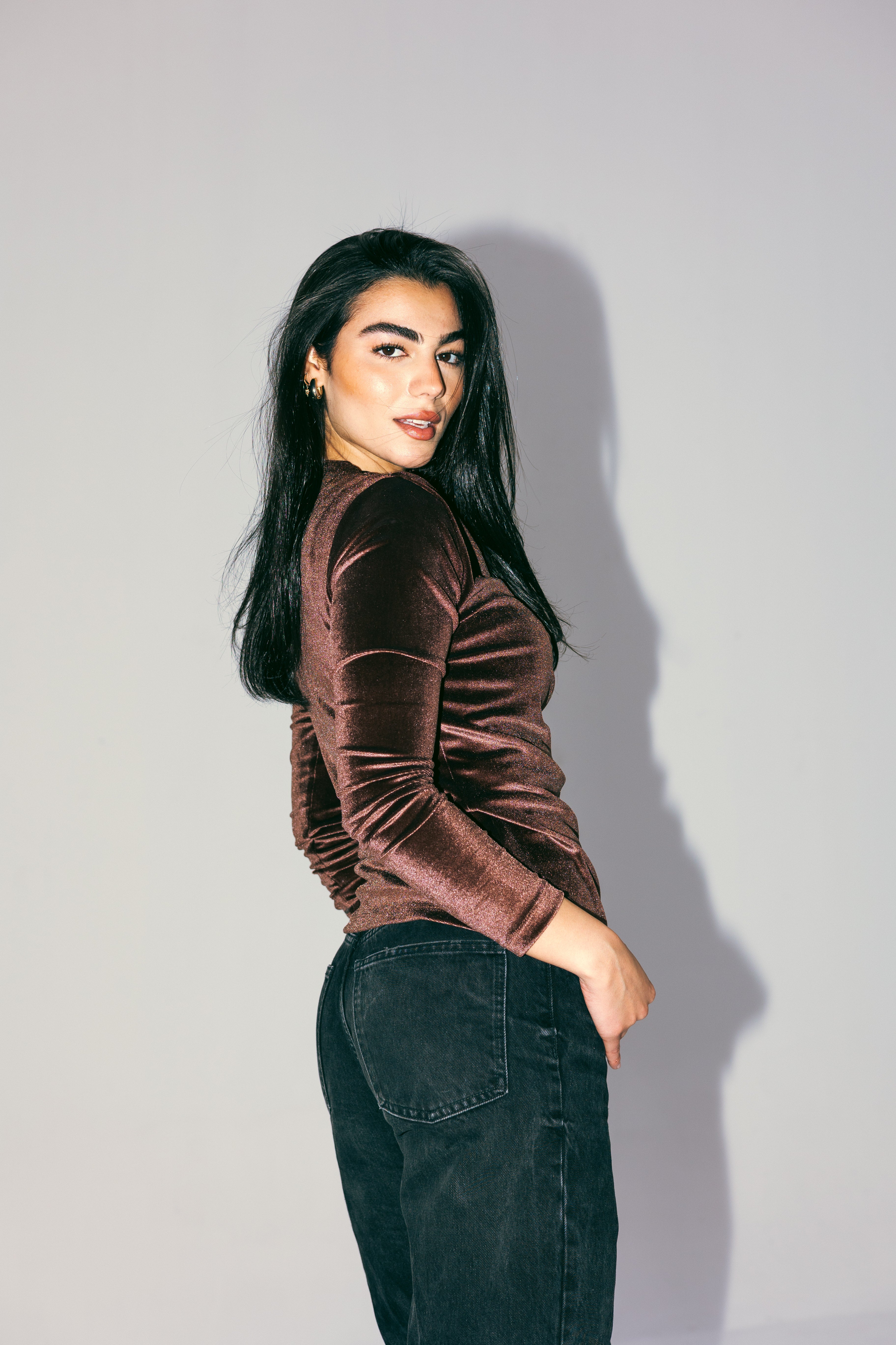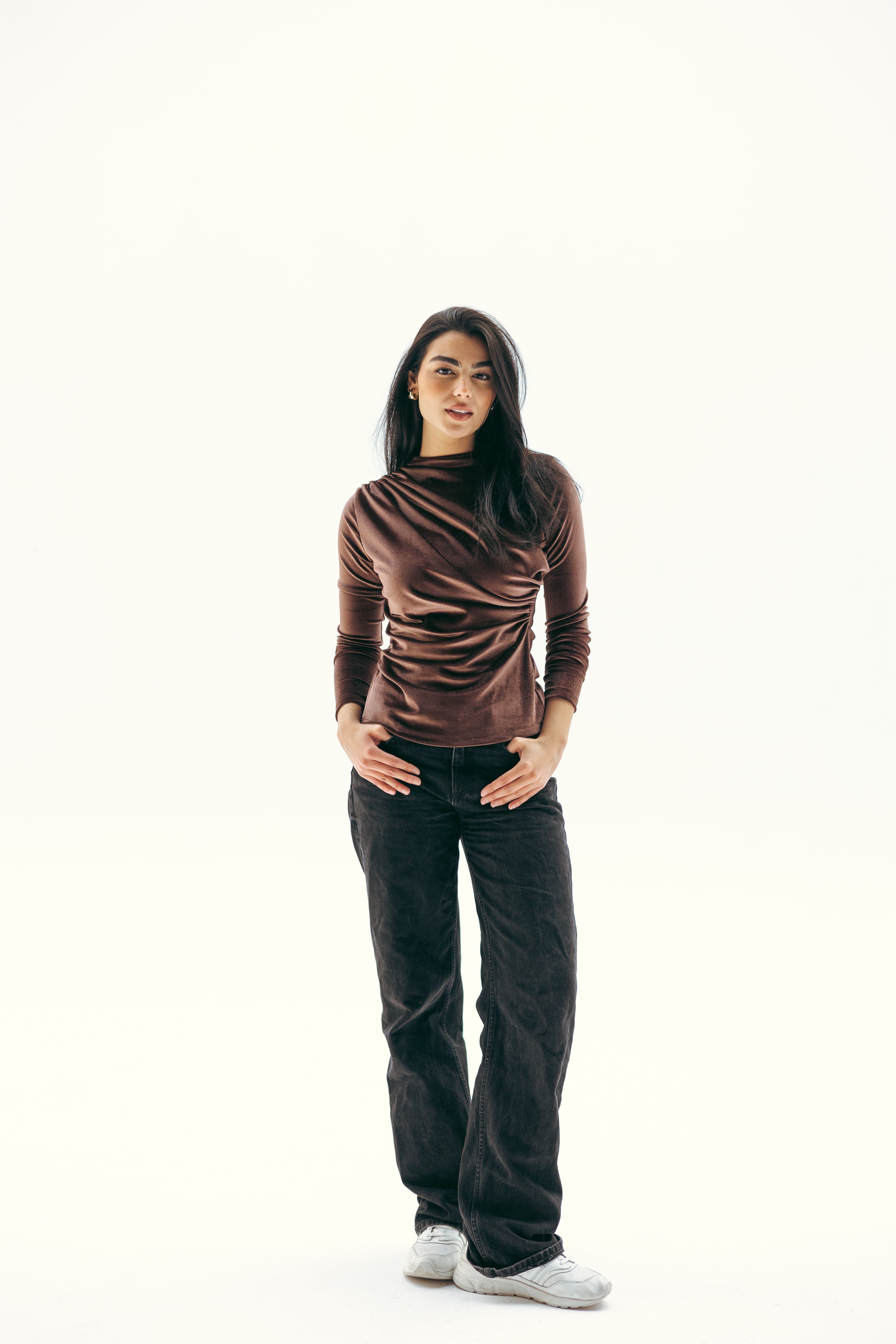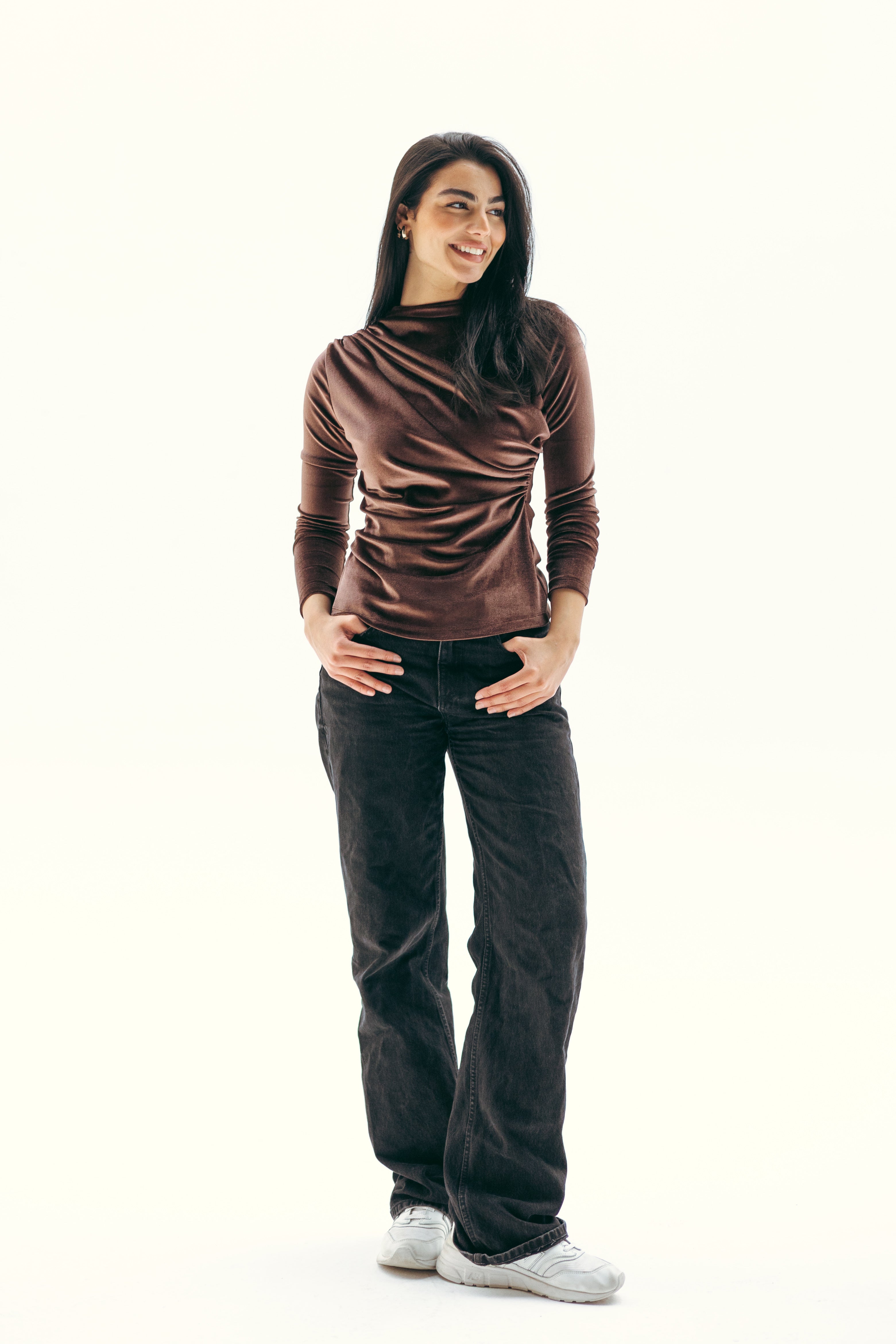 VELVET DRAPE TOP -BROWN