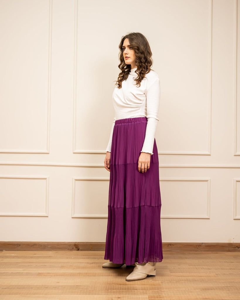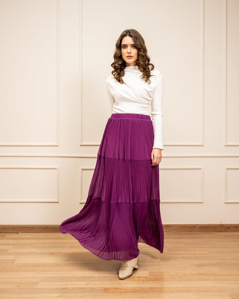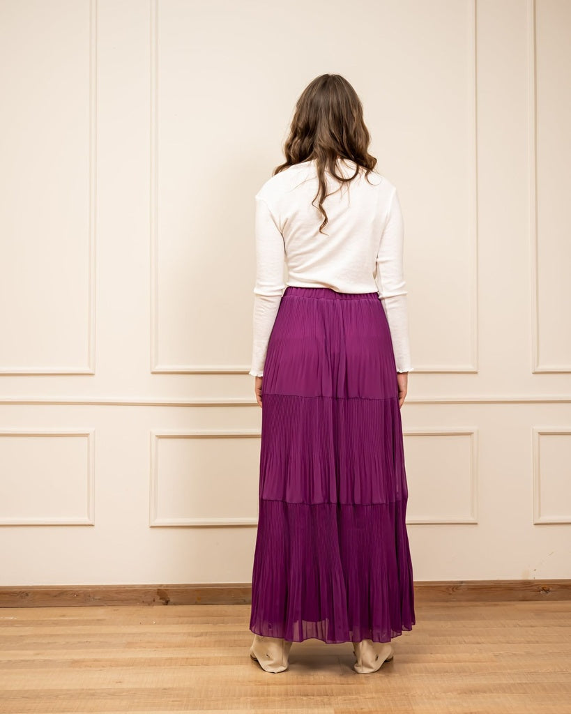 LAYERED CHIFFON PLISSE SKIRT-Burgundy