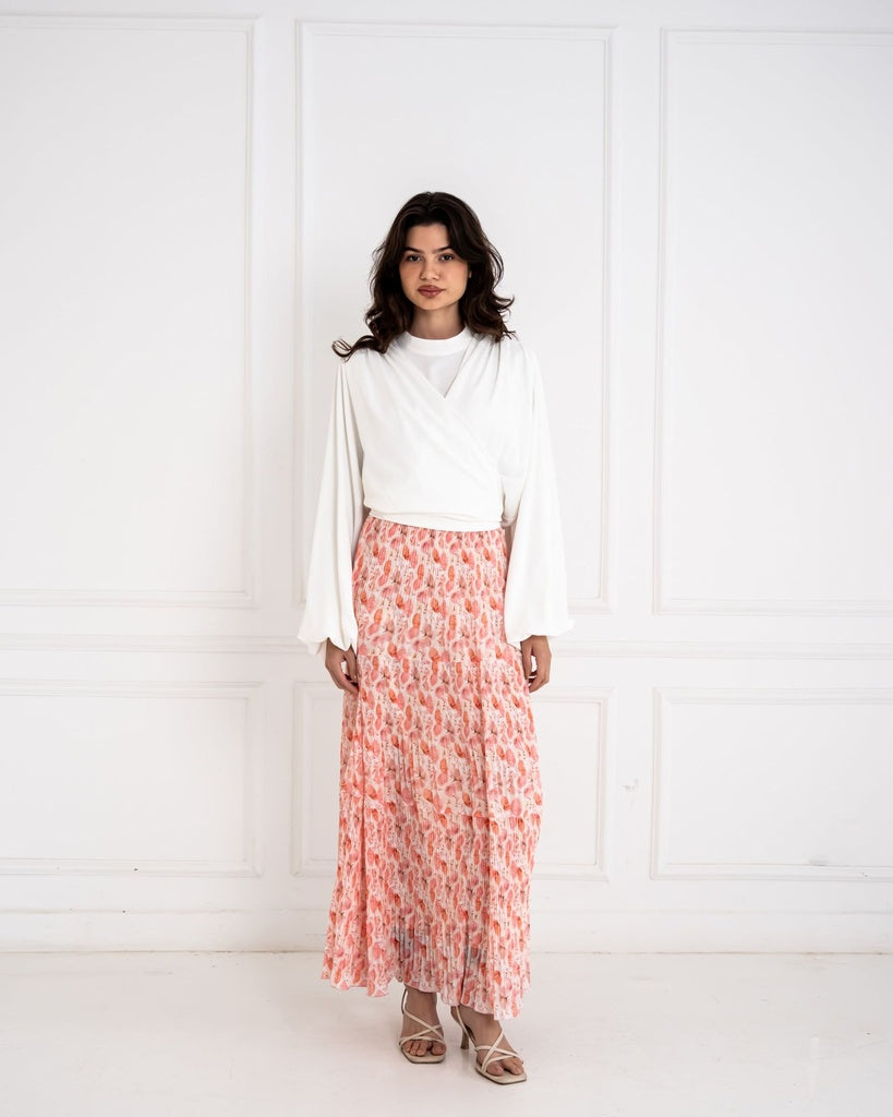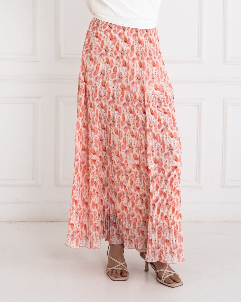 LAYERED CHIFFON PLISSE SKIRT-PINK