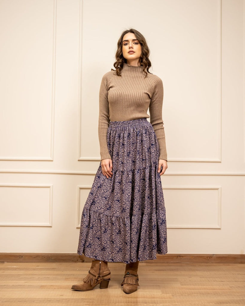 RUFFLE SKIRT-BLUE BLACK - is backordered and will ship as soon as it is back in stock.