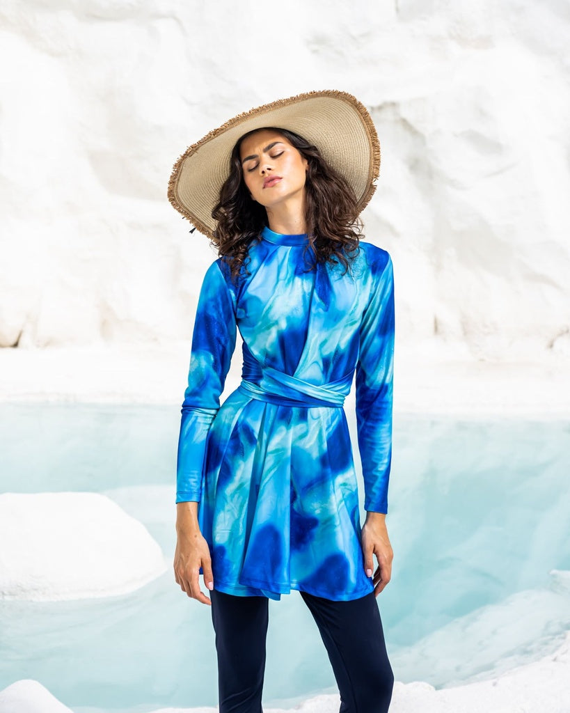 swimshirt printed-OCEAN BLUE ( TOP ONLY )