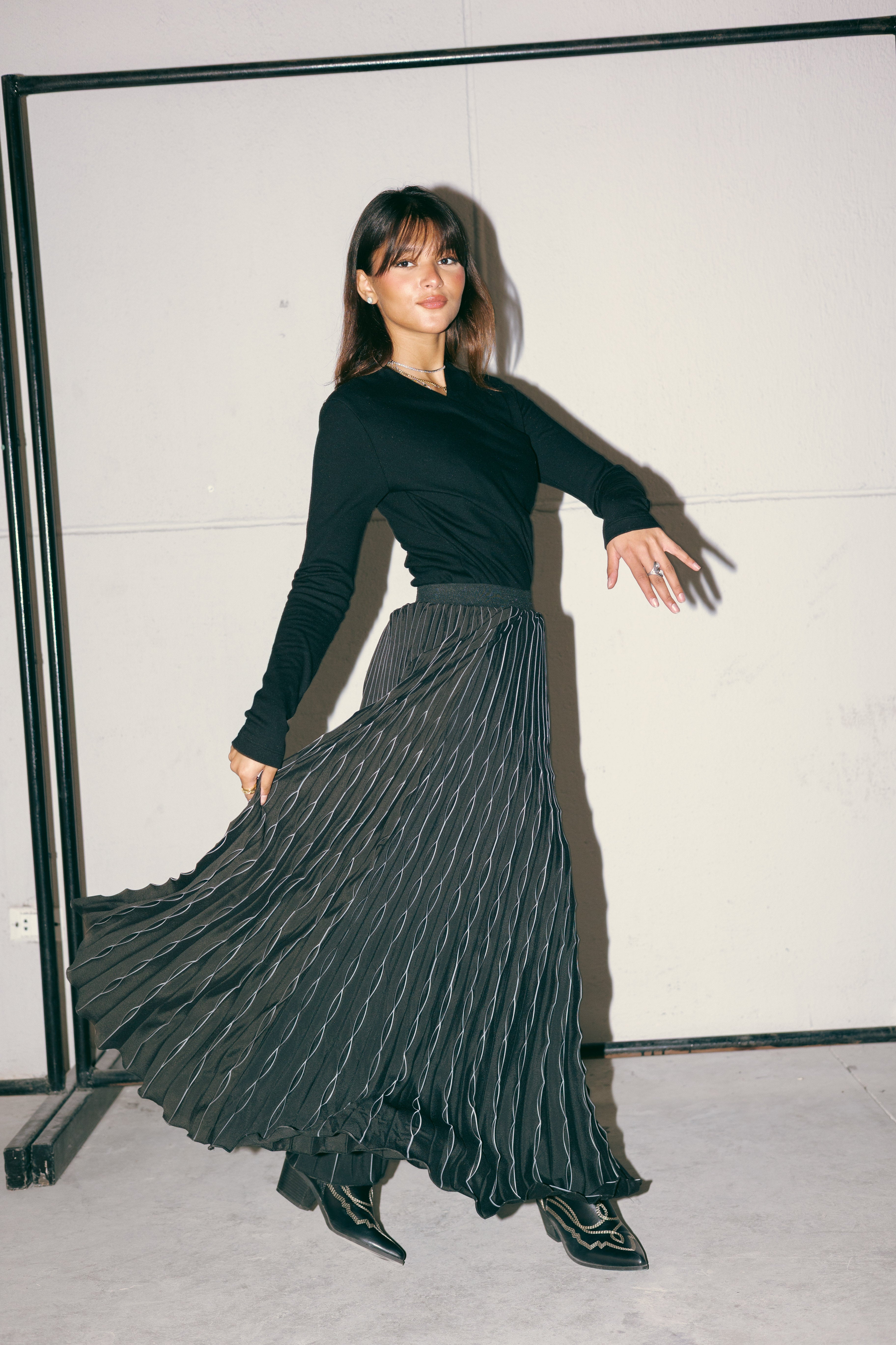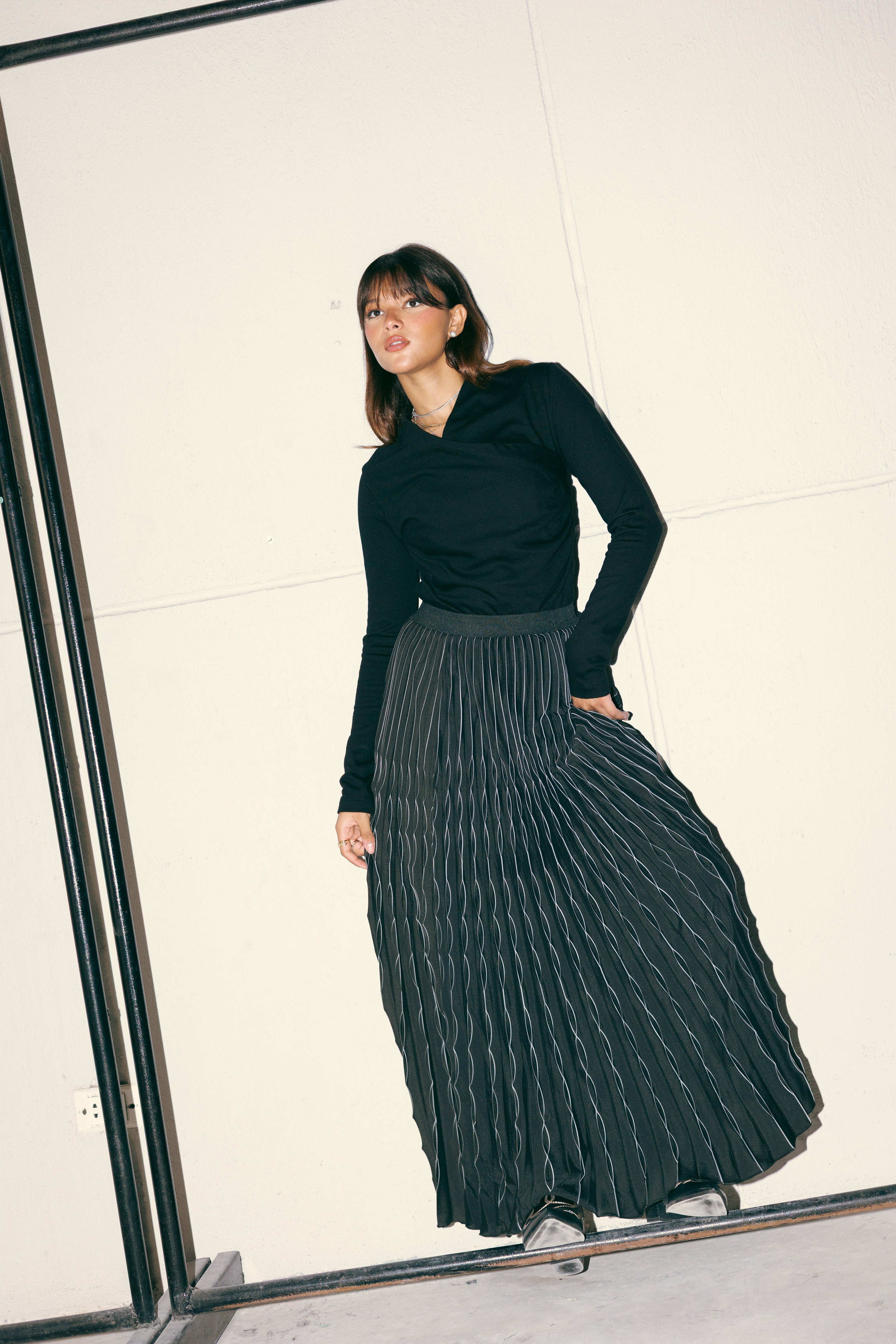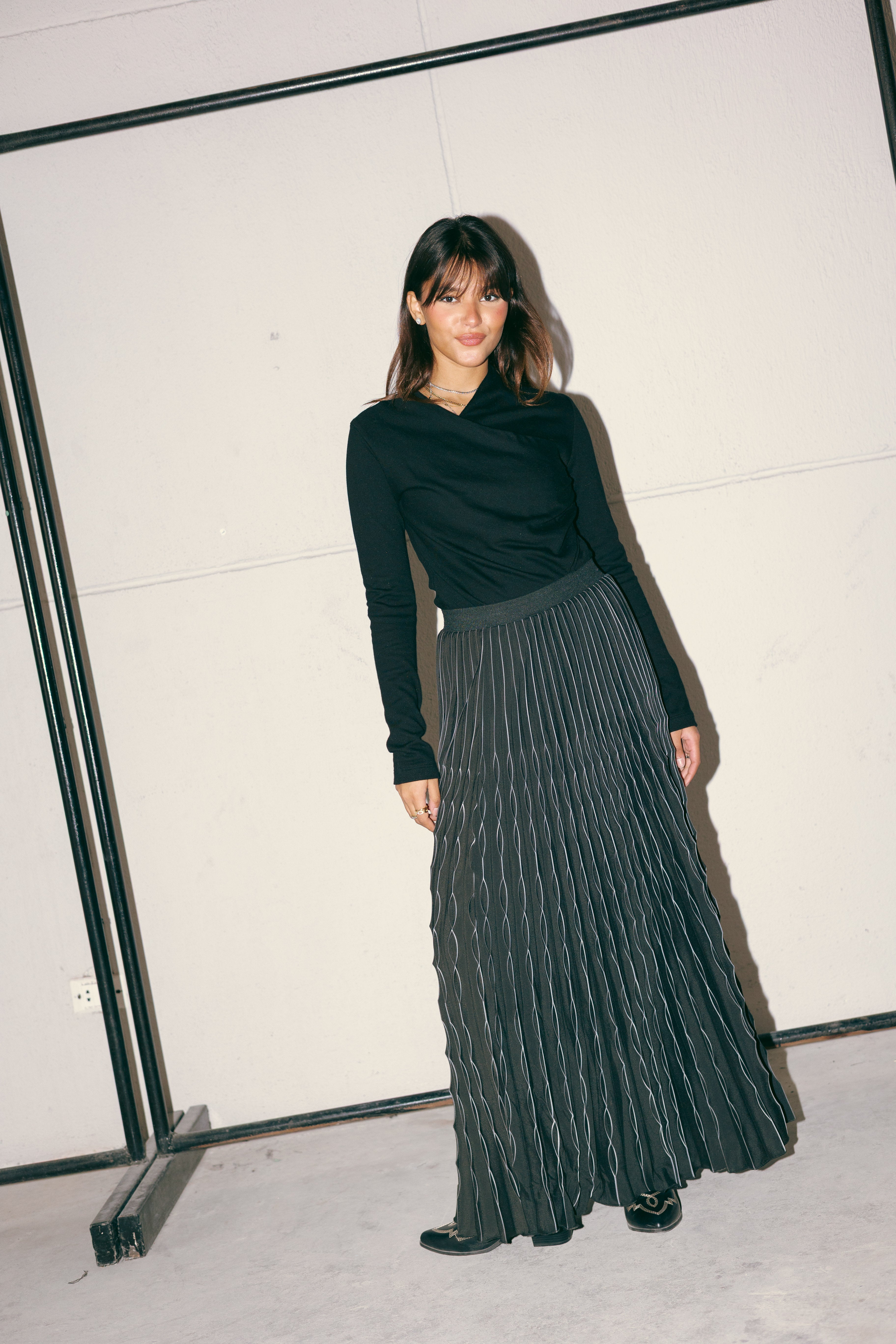 MAXI PLEATED SKIRT -BLACK