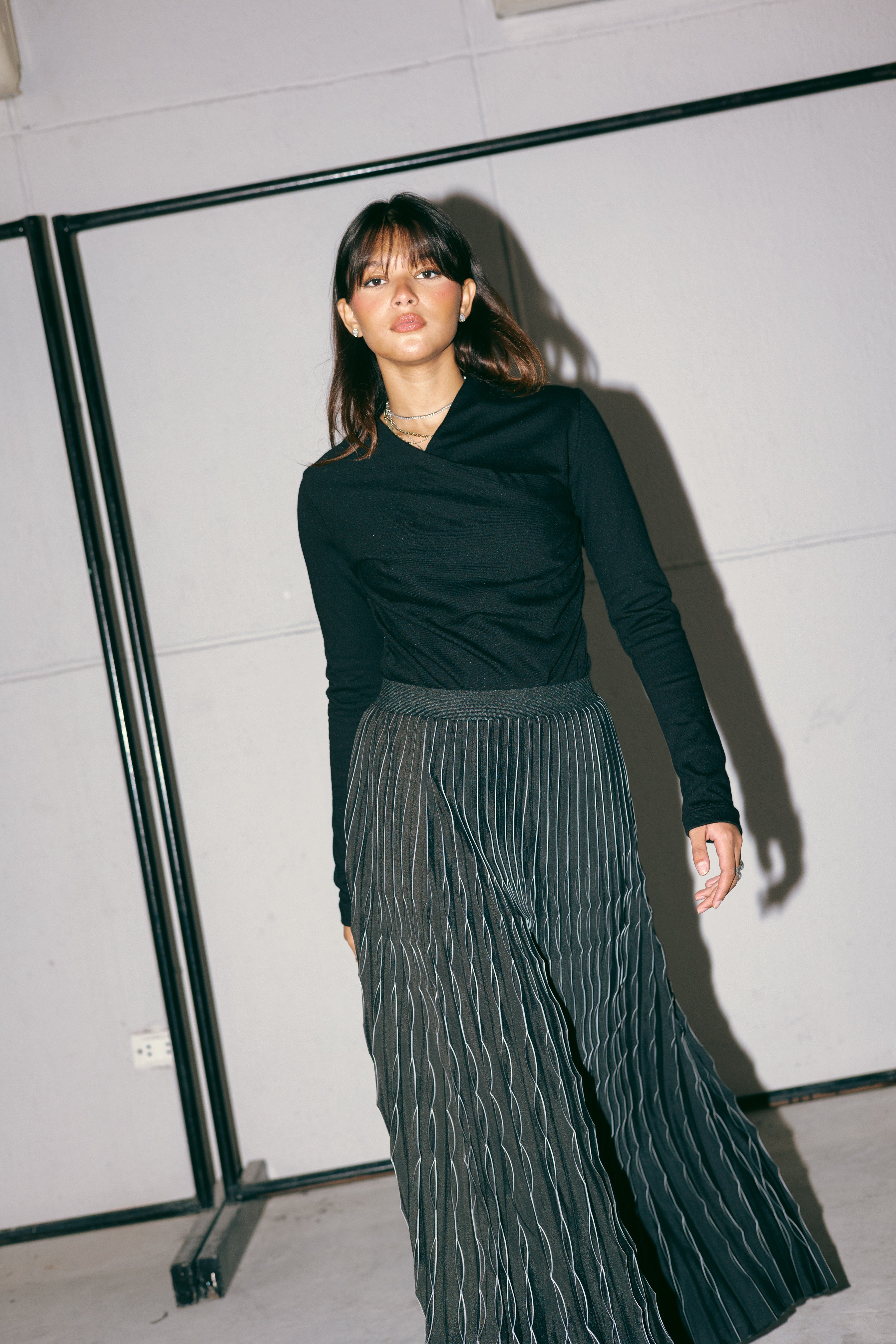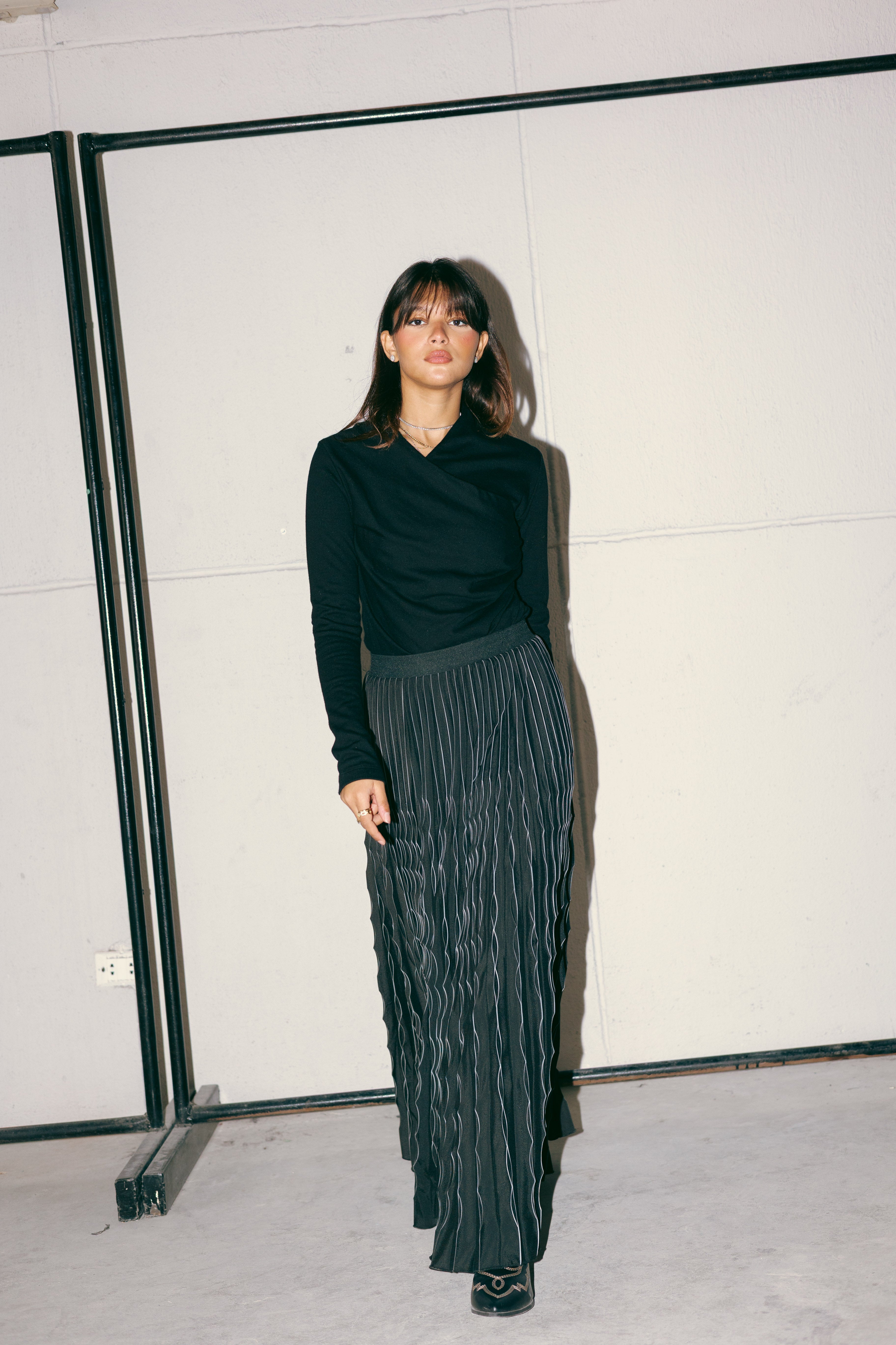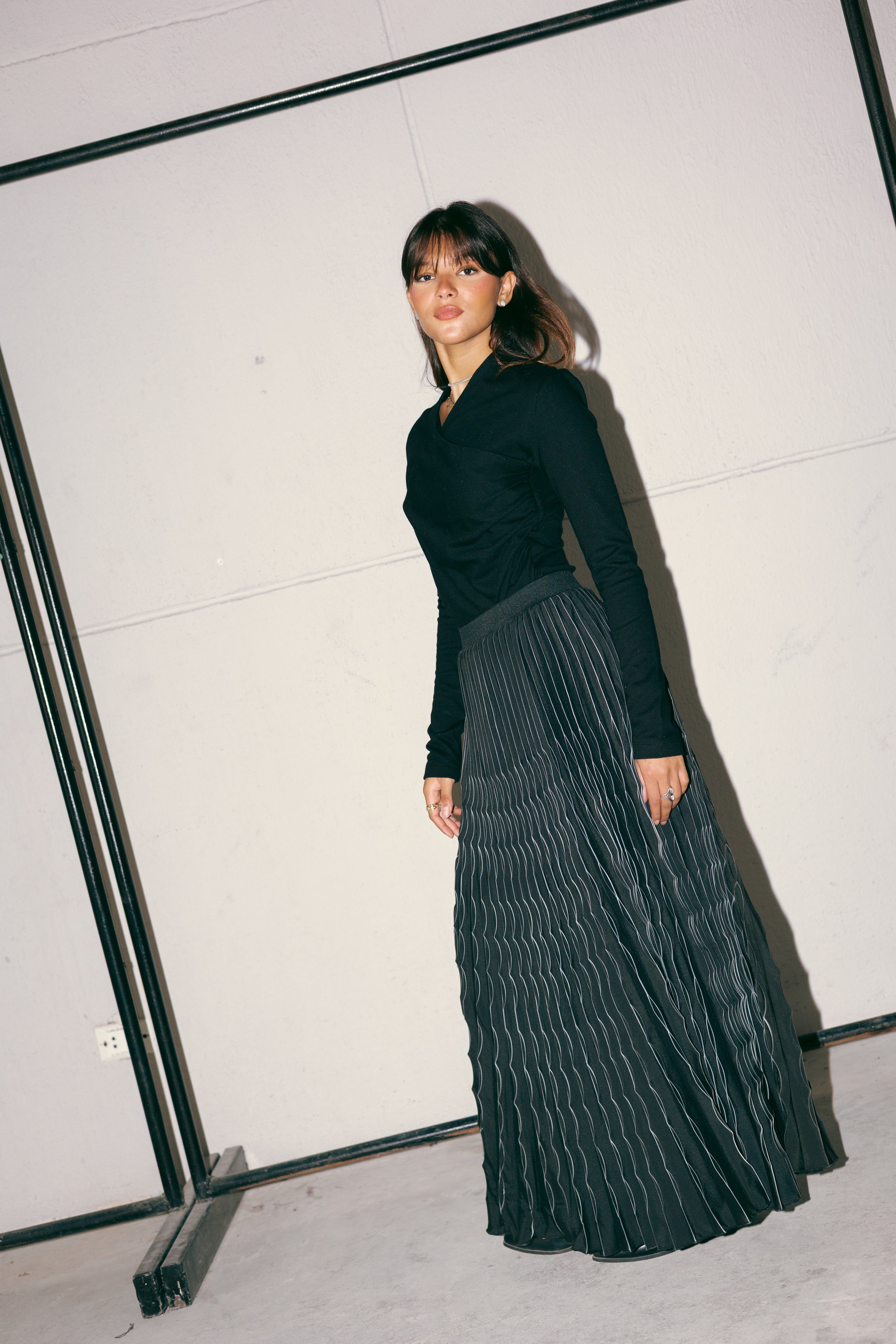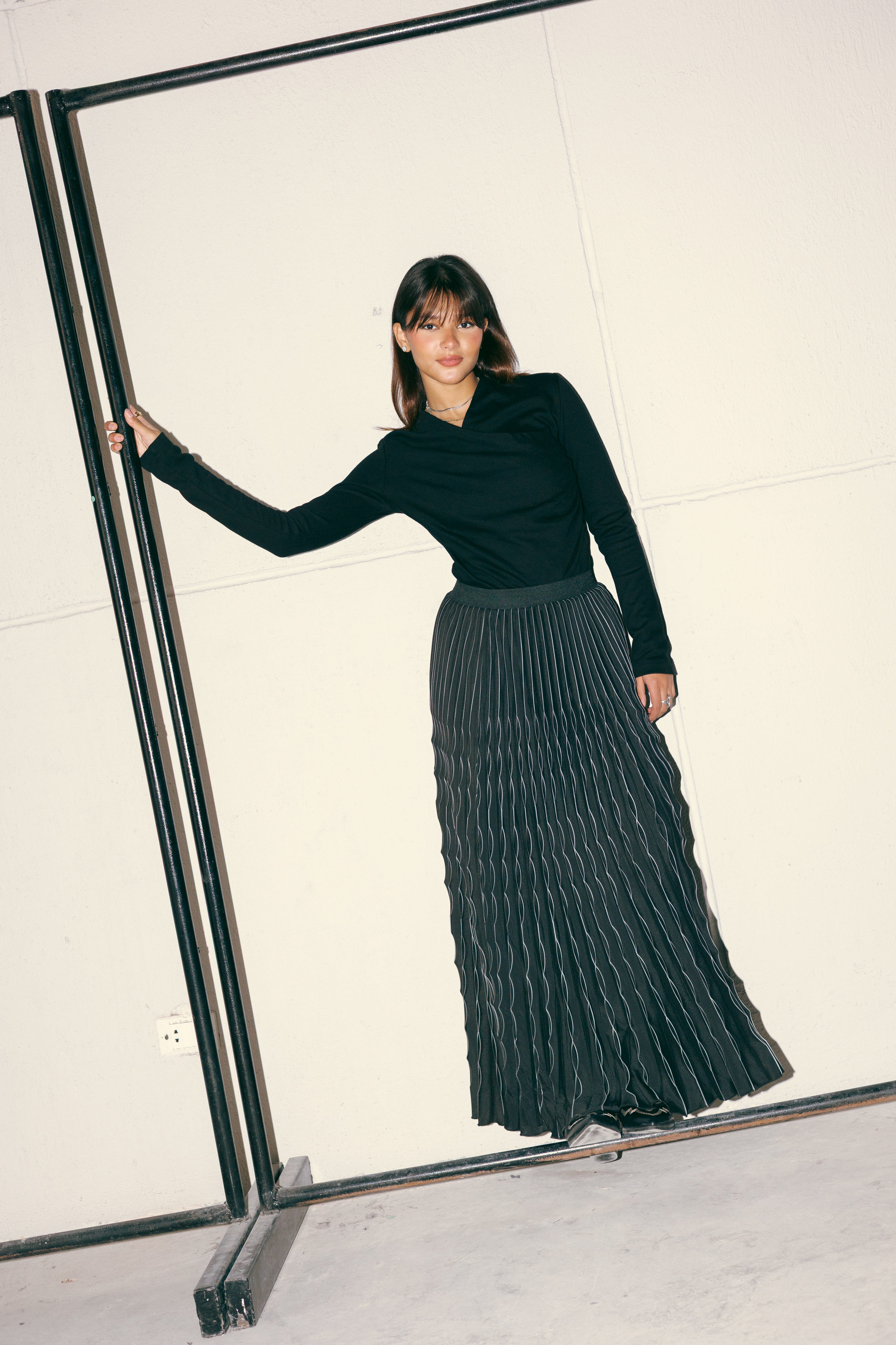 MAXI PLEATED SKIRT -BLACK