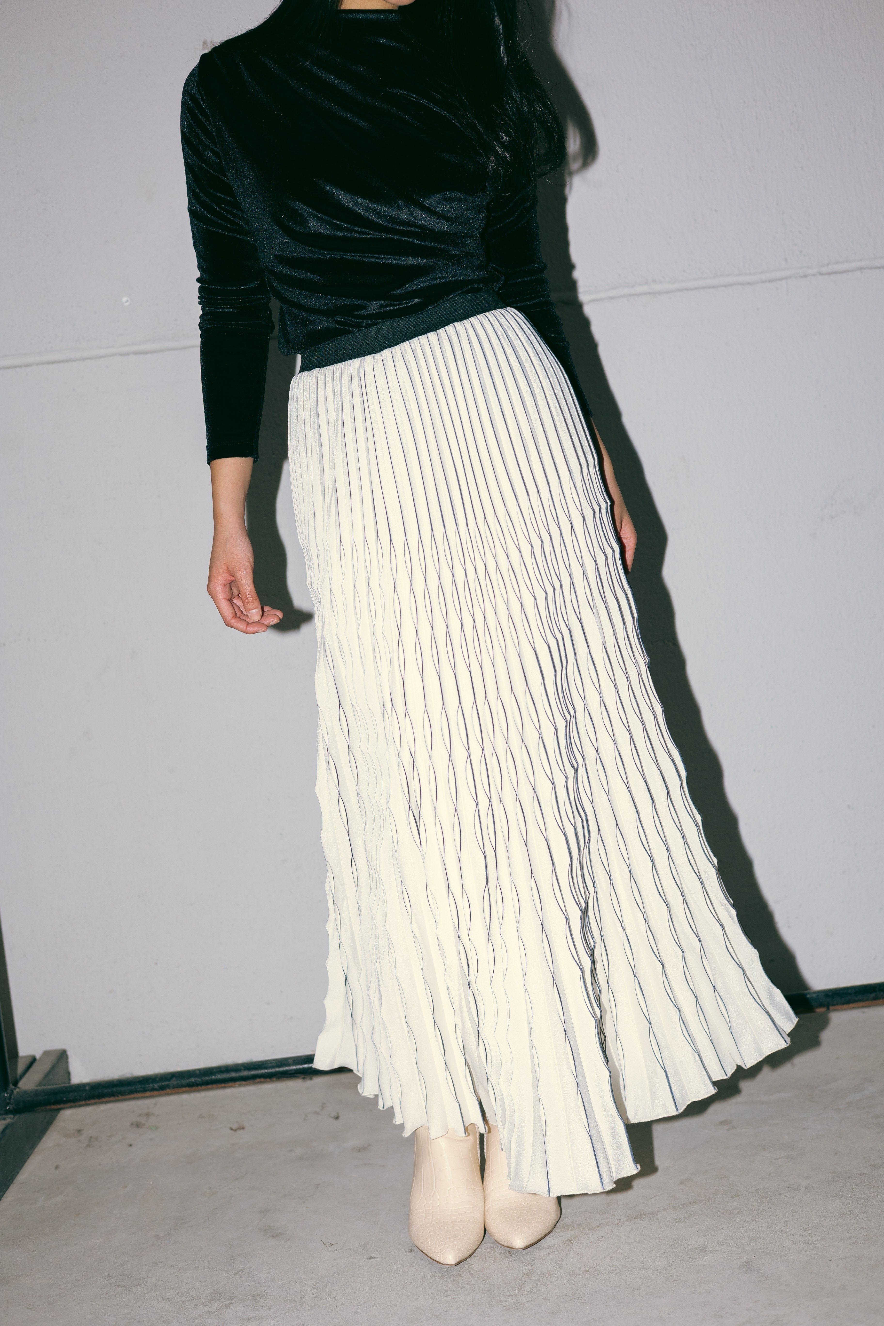 MAXI PLEATED SKIRT -OFF-WHITE