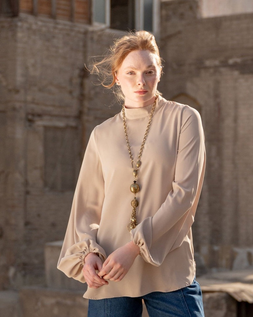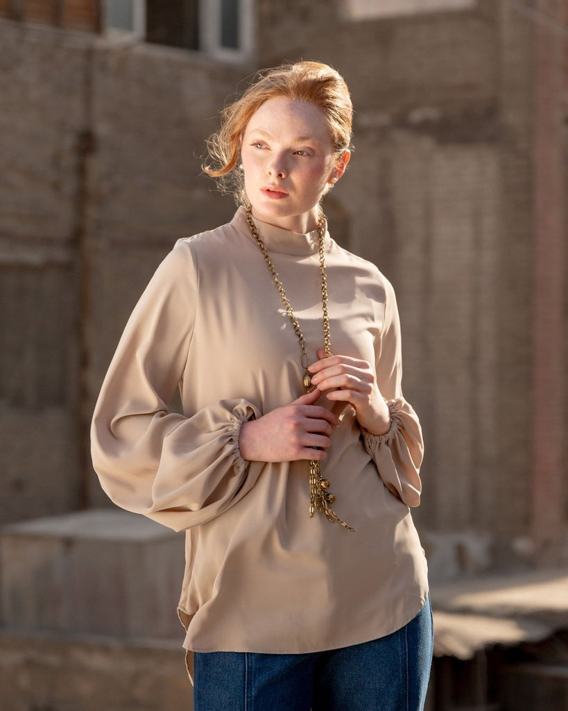 This BAFFY SLEEVES BASIC BLOUSE-BEIGE is a versatile addition to any wardrobe. With its unique baffy sleeves, it offers a stylish look that can easily transition from day to night. Made from high-quality fabric, it provides both comfort and durability. Perfect for any occasion, this blouse is a must-have for any fashion-forward individual.