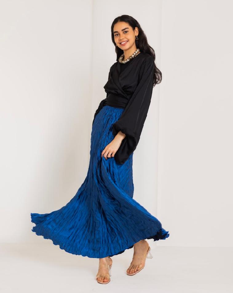 CRINKLE SATIN SKIRT-PETROLEUM - is backordered and will ship as soon as it is back in stock.