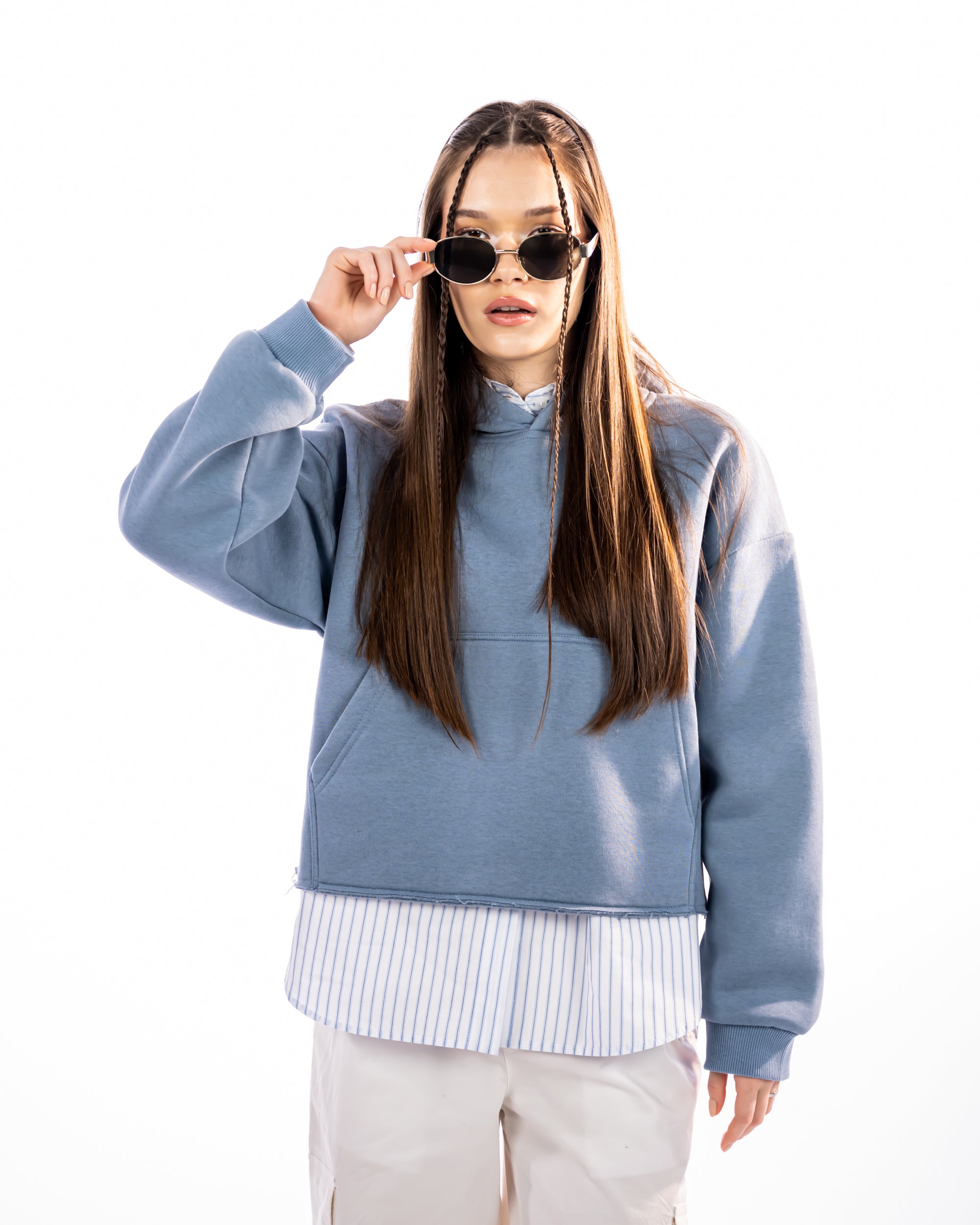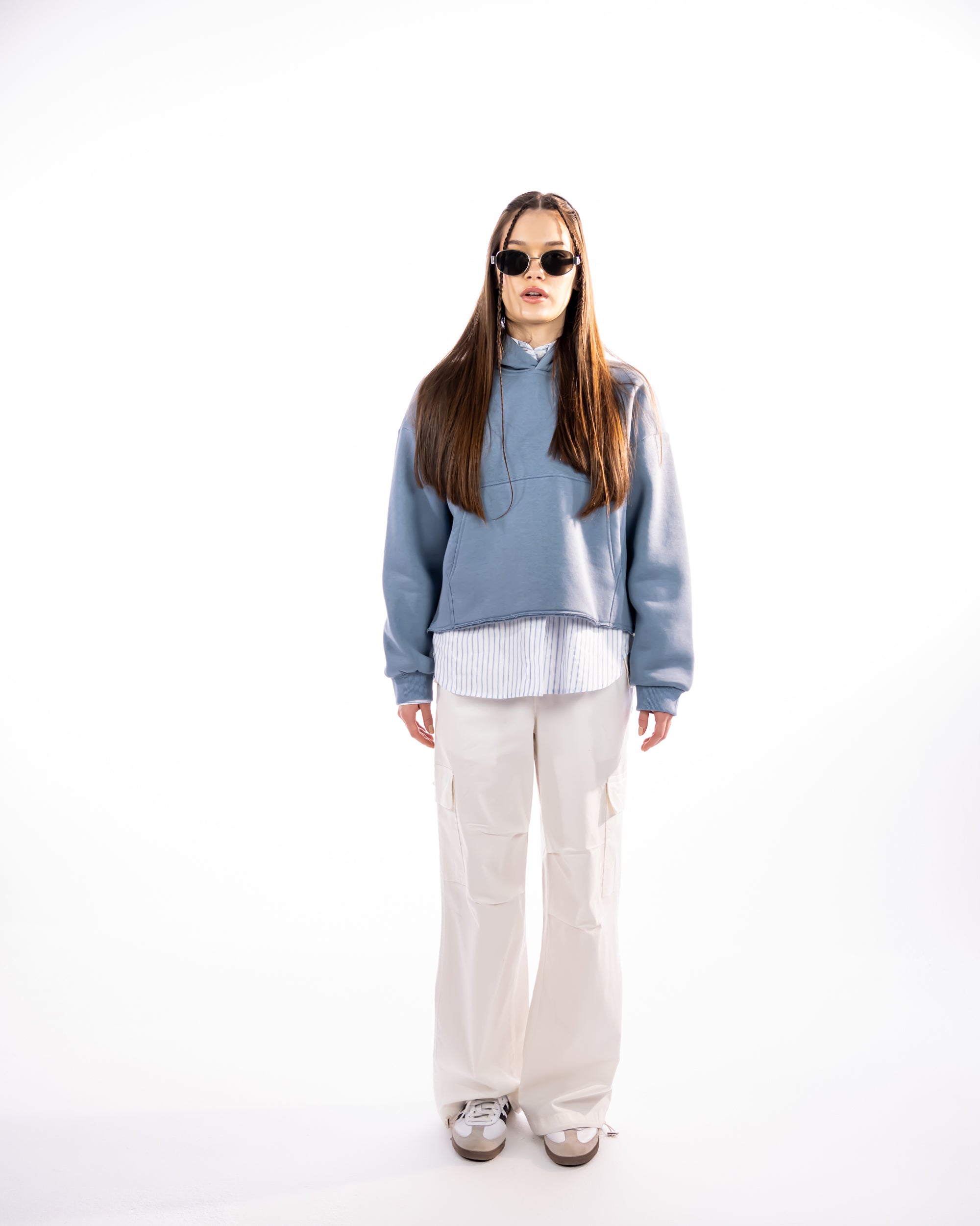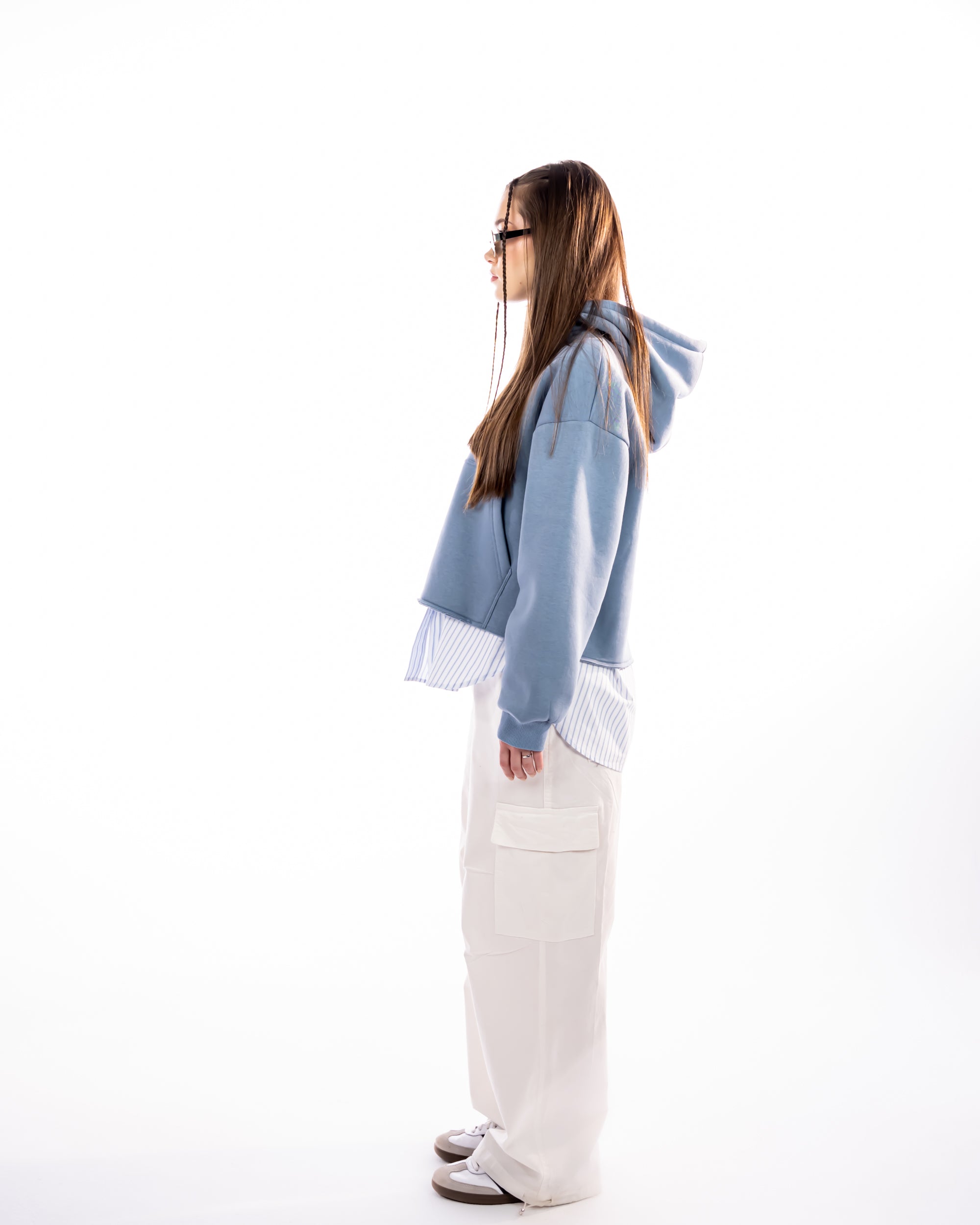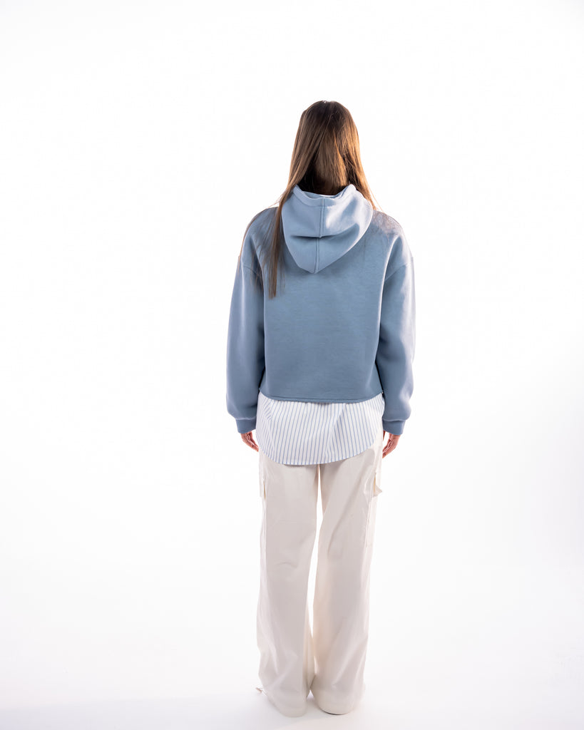 CROPPED HOODIE WITH POCKETS-BABY BLUE - is backordered and will ship as soon as it is back in stock.