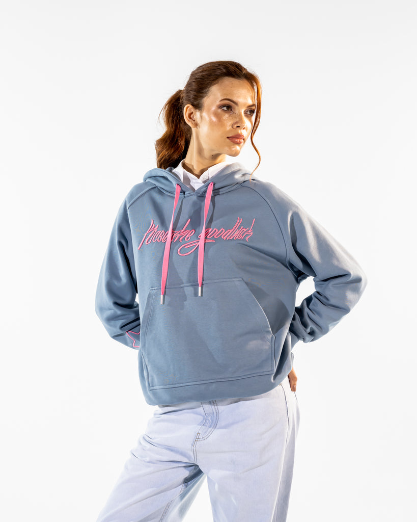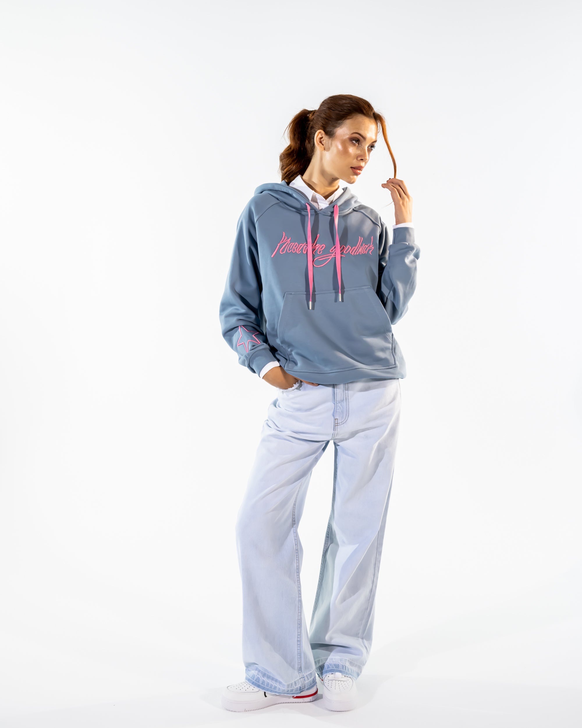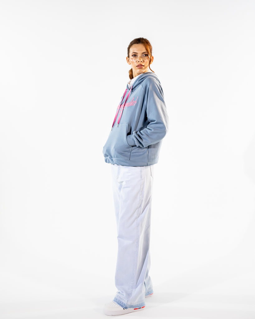 EMBROIDERED HOODIE -BABY BLUE - is backordered and will ship as soon as it is back in stock.