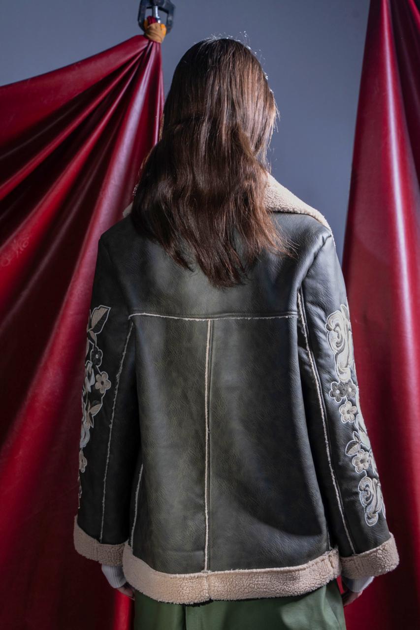 EMBROIDERY DOUBLE FACED JACKET-OLIVE - is backordered and will ship as soon as it is back in stock.