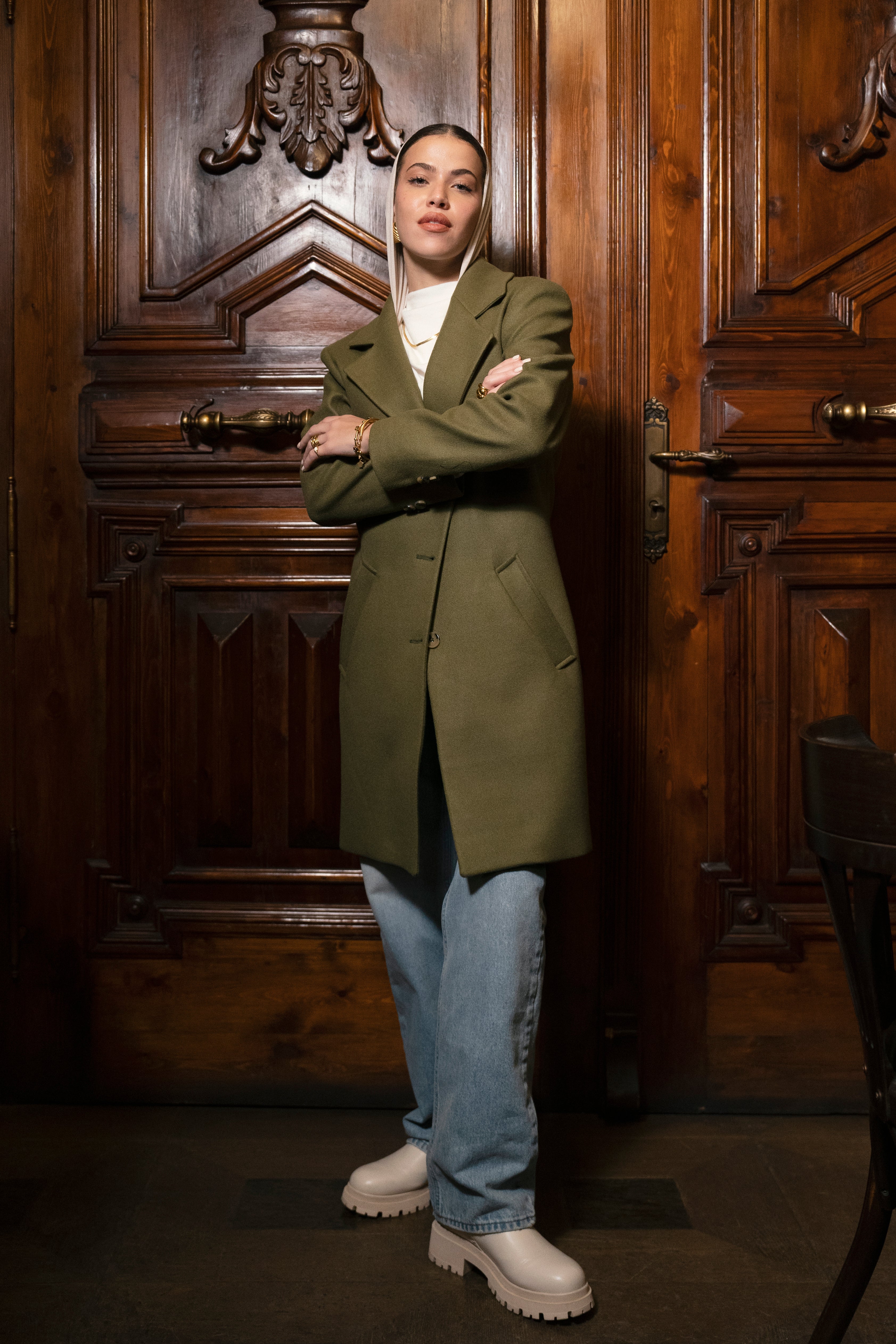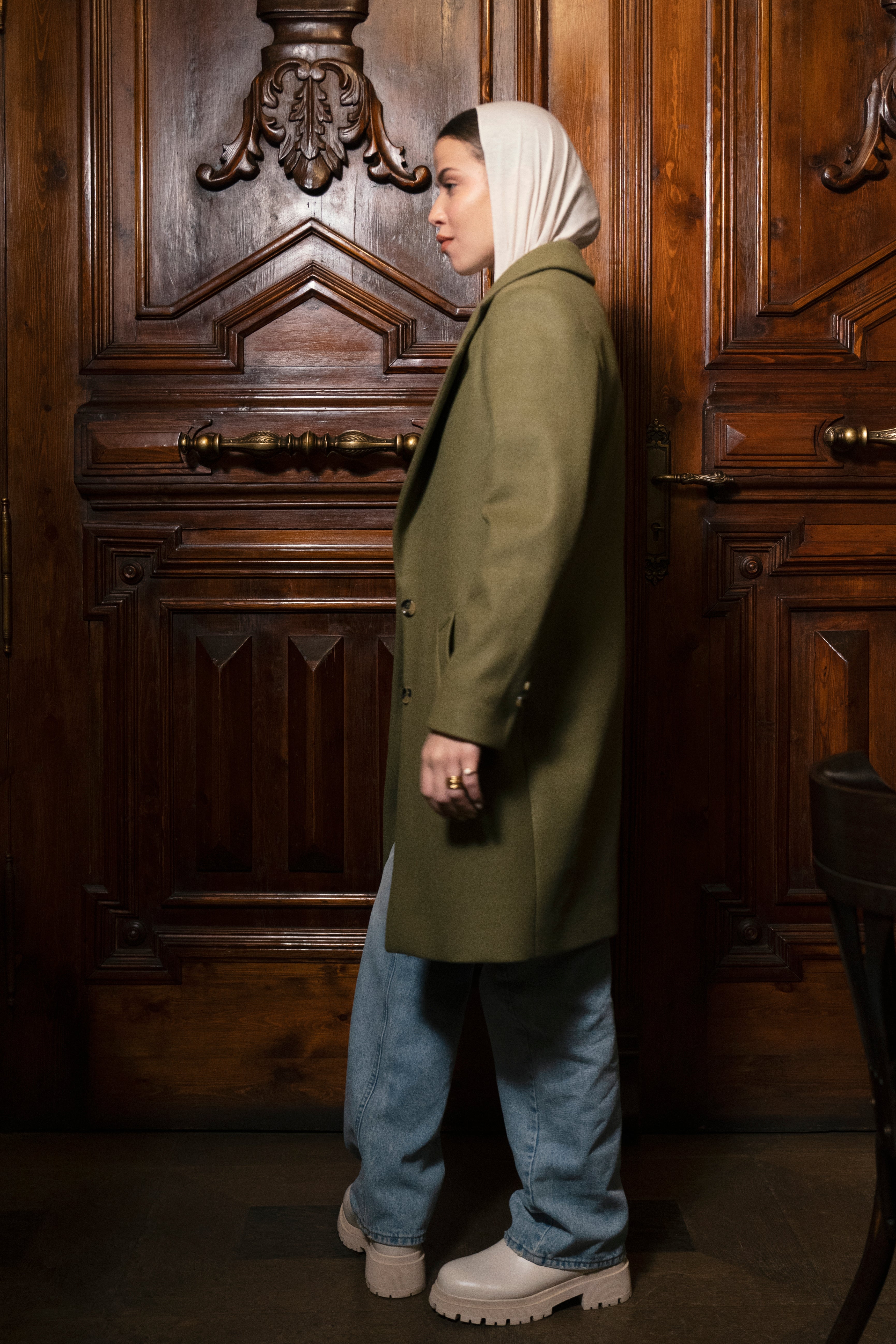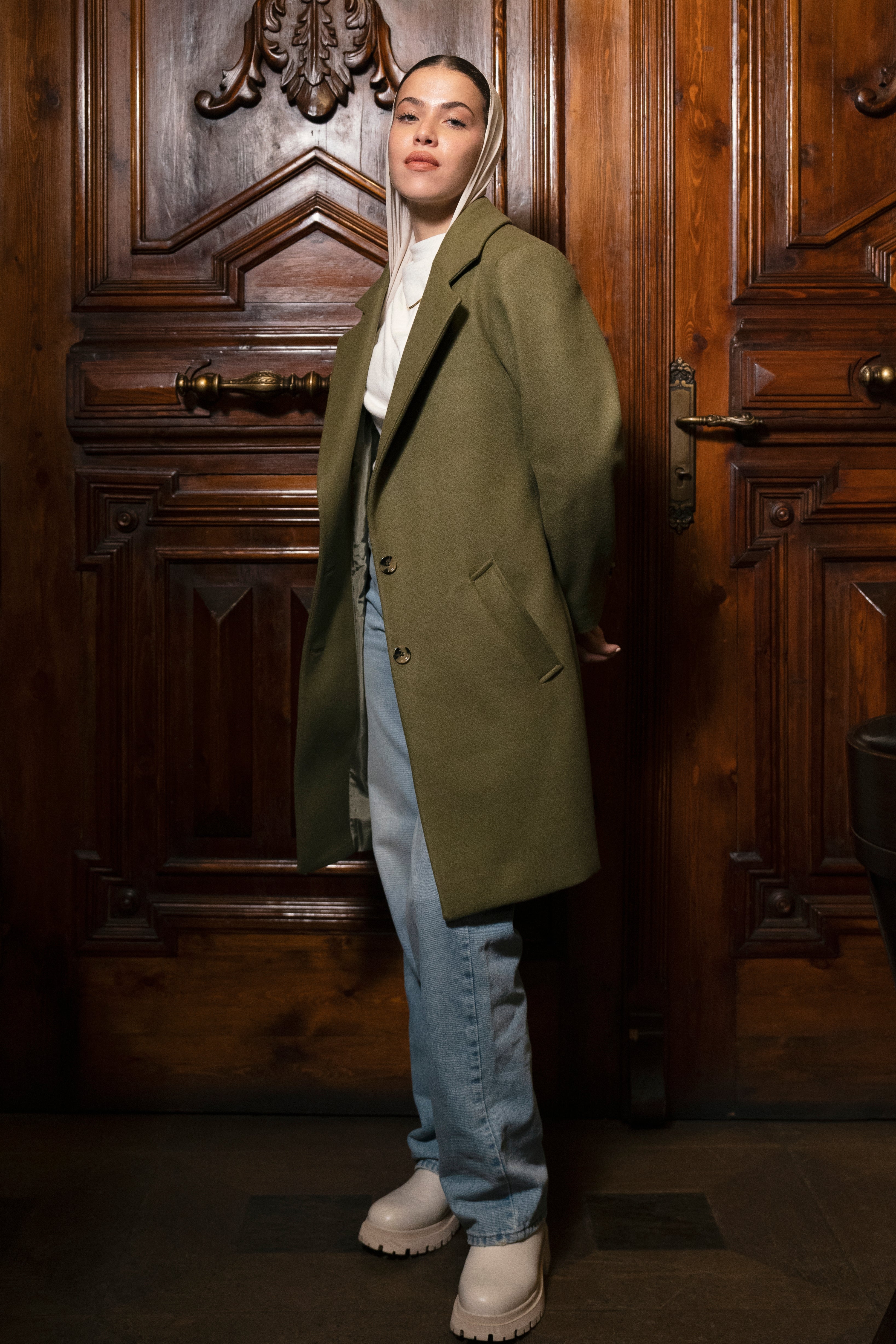 FITTED LONG COAT -OLIVE - is backordered and will ship as soon as it is back in stock.