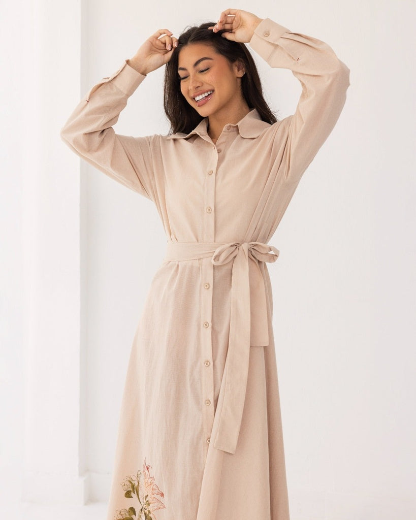 flowered print shirt dress-BEIGE - is backordered and will ship as soon as it is back in stock.