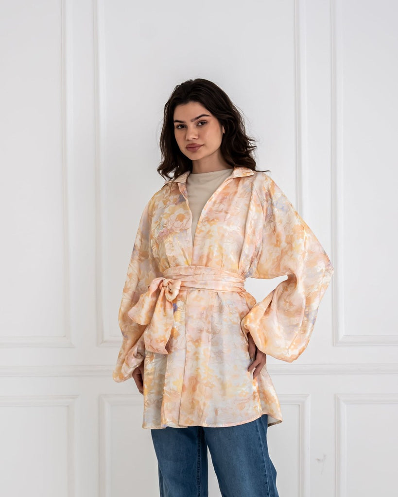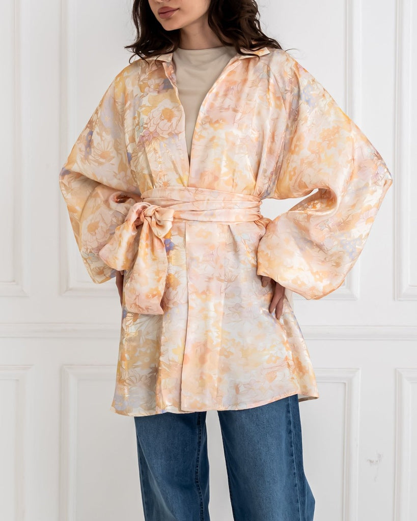 FLOWERED SHIMMER CARDIGAN -LIGHT ORANGE