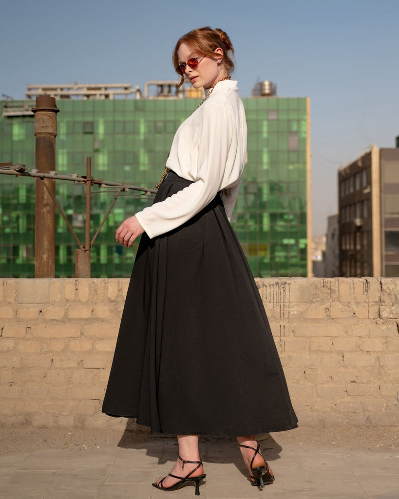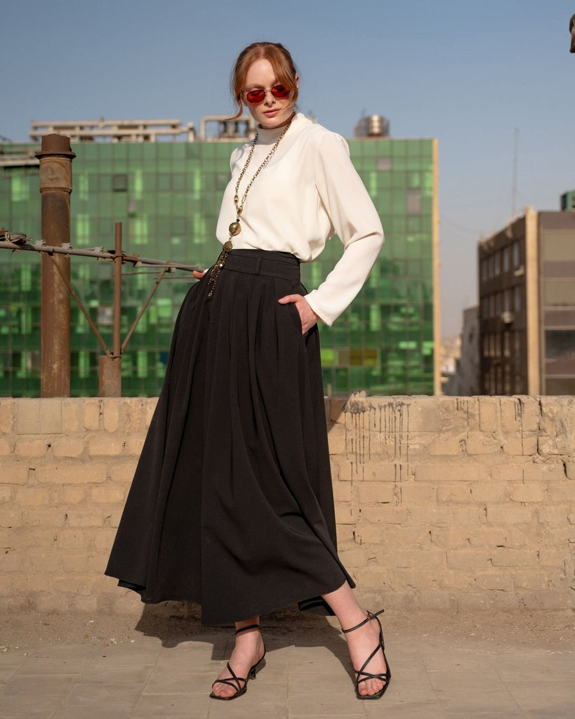 Introducing the HIGH WAIST KALOSH SKIRT-BLACK, designed with a high waist for a flattering and comfortable fit. Made from premium quality material, this skirt offers a sophisticated and sleek look. Perfect for any occasion, from business meetings to a night out. Upgrade your wardrobe with this must-have staple.
