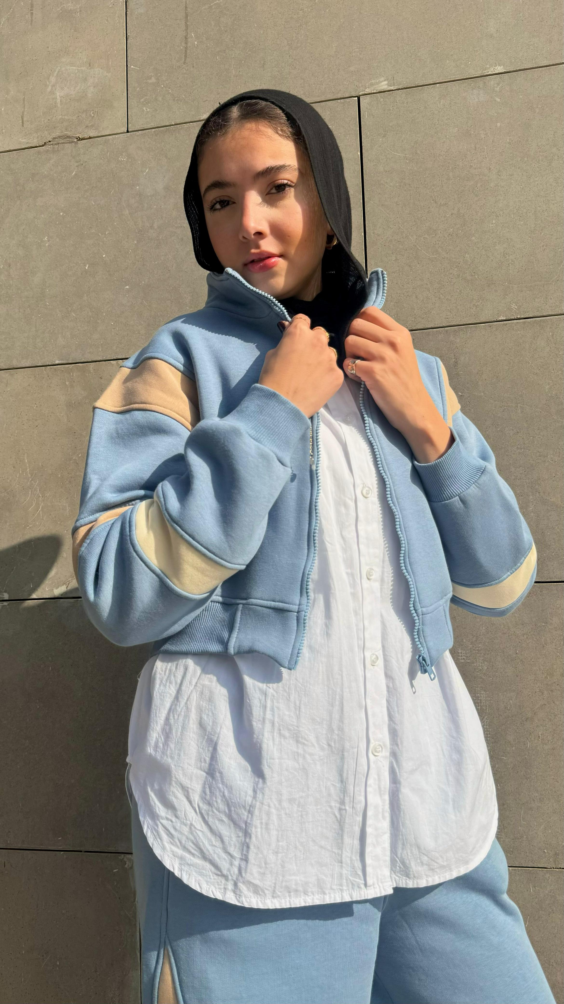 MIXED CROPPED SWEATSHIRT -BABY BLUE - is backordered and will ship as soon as it is back in stock.