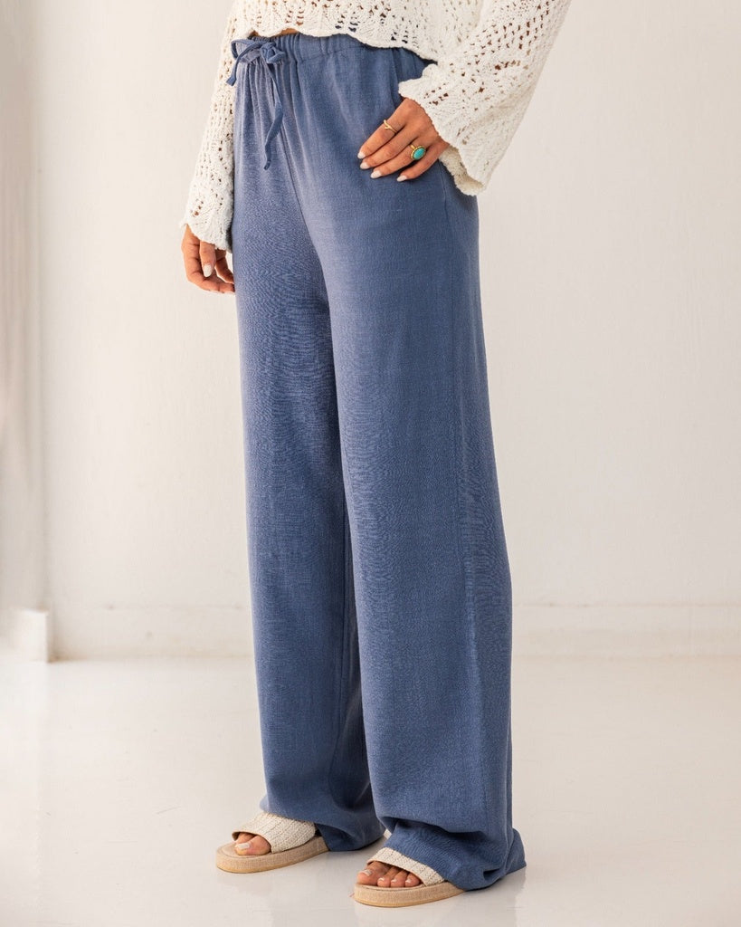 PLAIN LINEN WIDE LEG PANTS-PETROLEUM - is backordered and will ship as soon as it is back in stock.