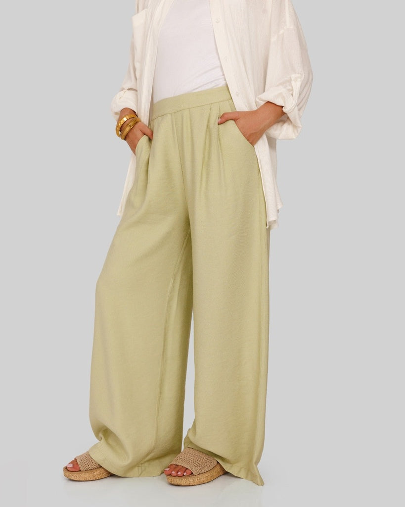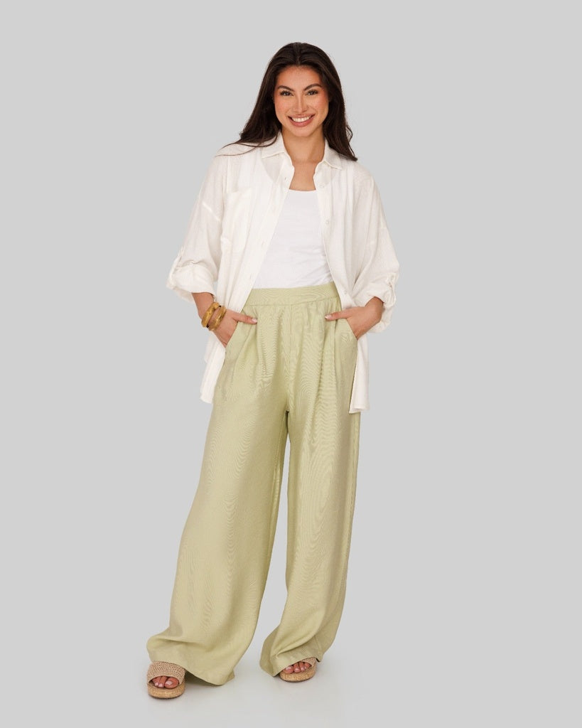 Crafted for style and comfort, these plain wide leg pants are a must-have in any wardrobe. Made with a light green fabric, they offer a refined look while keeping you cool and relaxed all day. Elevate your everyday outfits with these versatile pants.