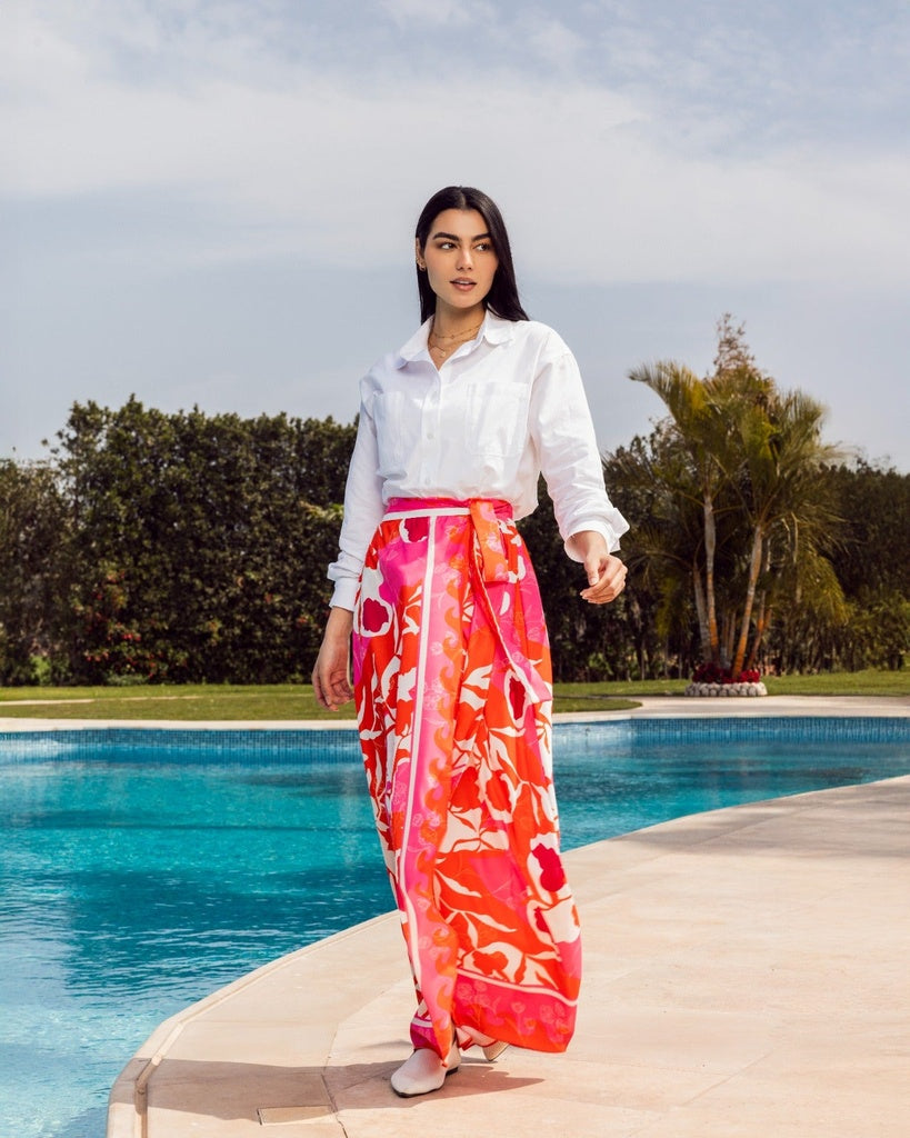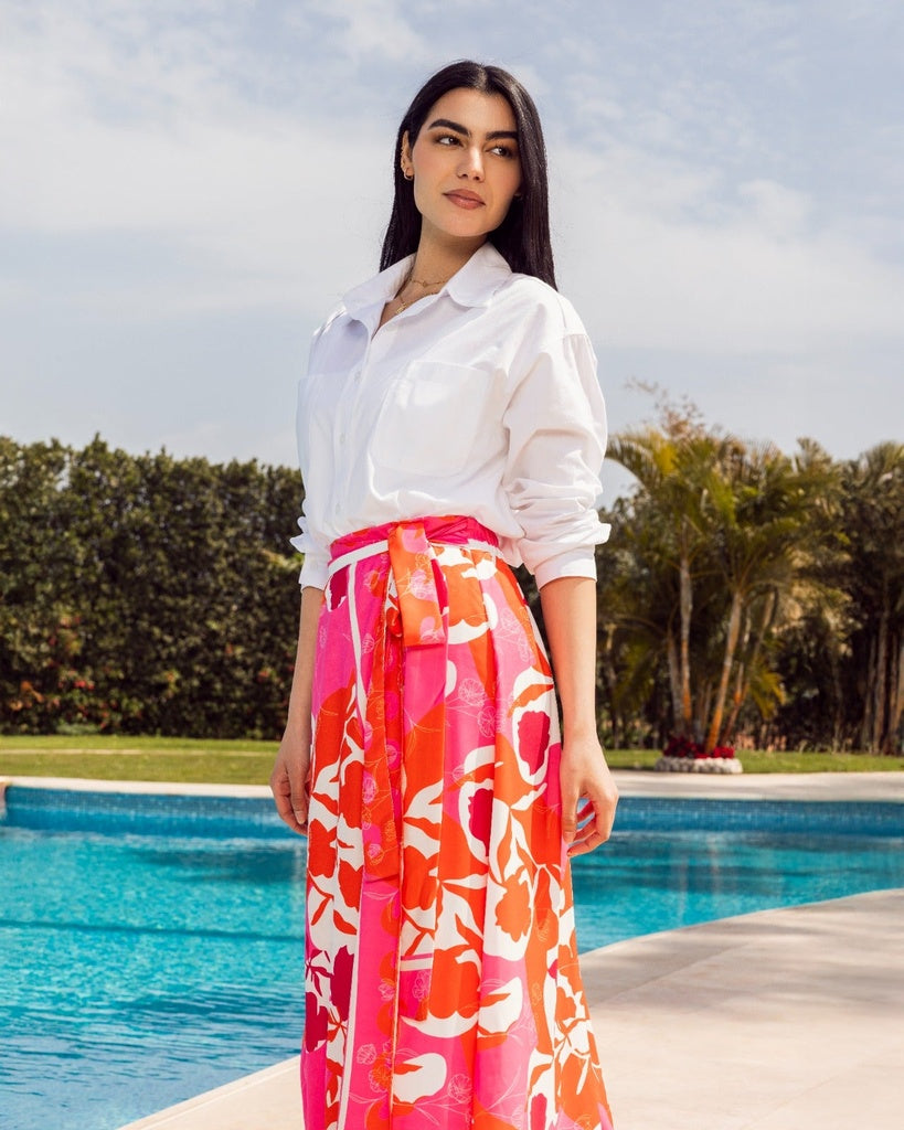 PRINTED WRAPPED SATIN SKIRT-FOSHIA