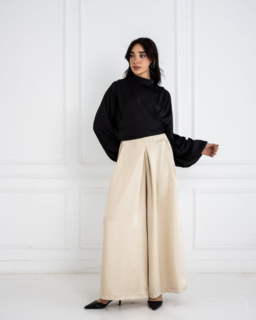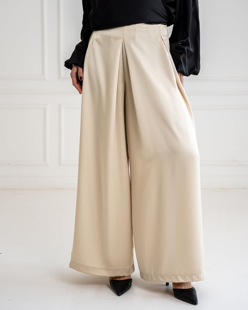 SATIN WIDE LEG PANTS-BEIGE - is backordered and will ship as soon as it is back in stock.