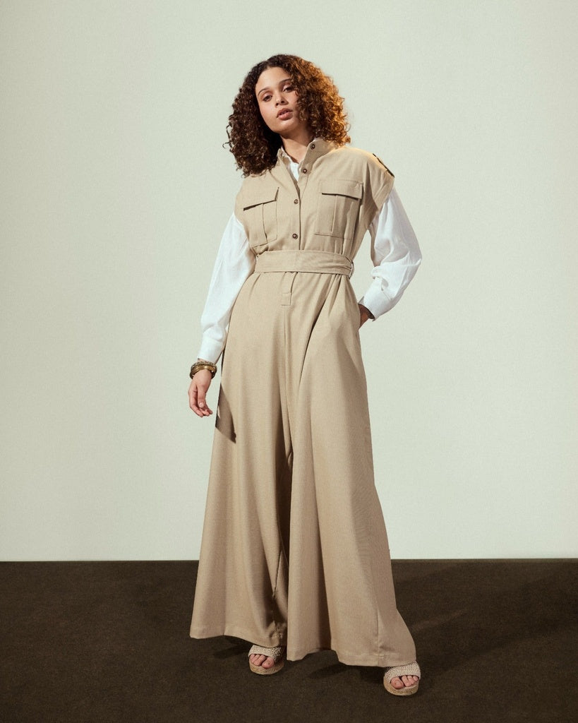 SLEEVELESS LINEN jUMPSUIT-BEIGE - is backordered and will ship as soon as it is back in stock.