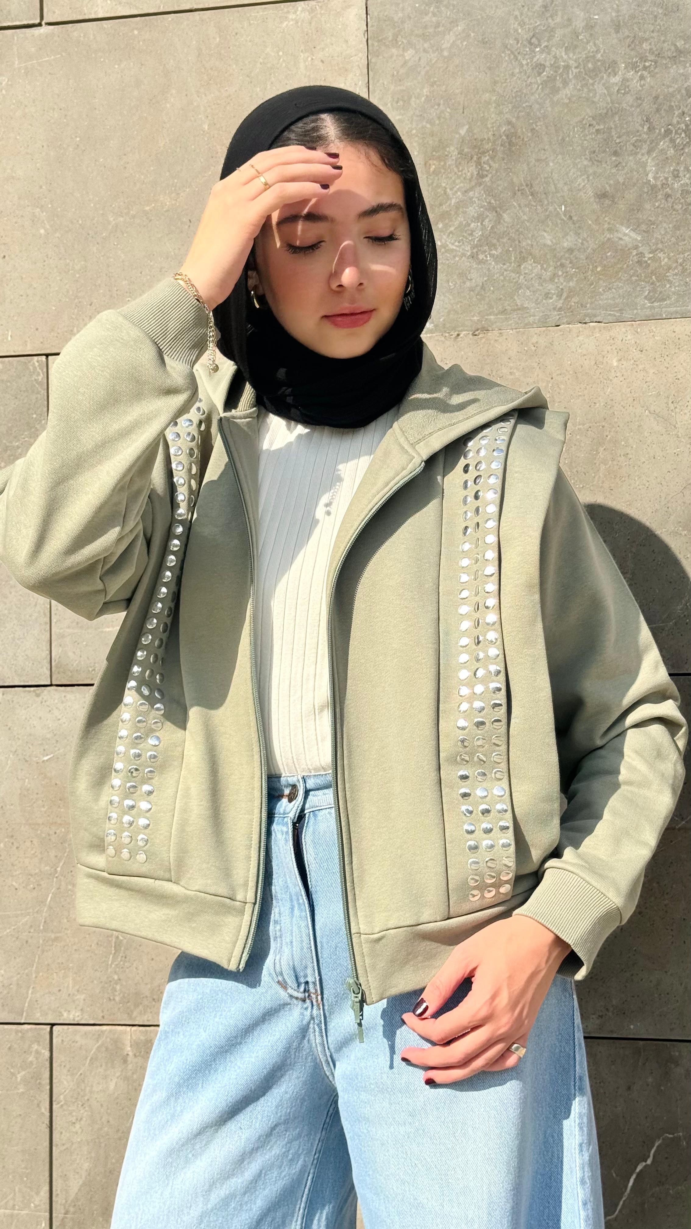 STUDDED MILTON SWEATSHIRT-OLIVE - is backordered and will ship as soon as it is back in stock.