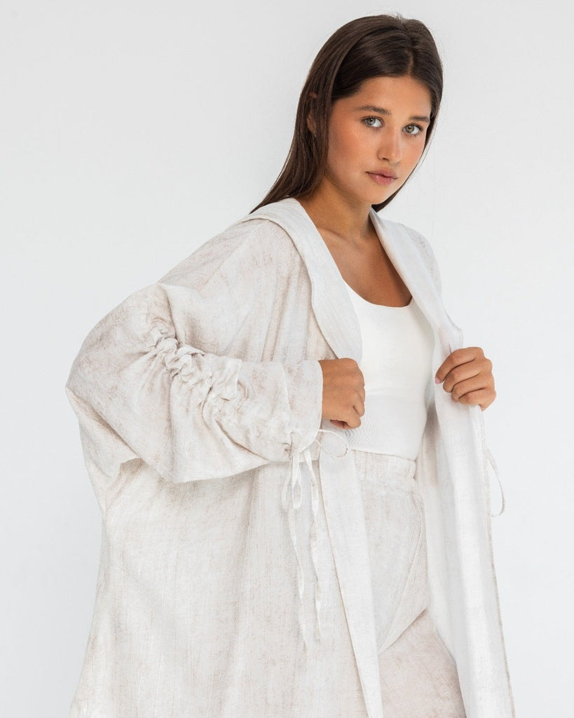 WITH HOODIE CRINKLE CARDIGAN-Light BEIGE - is backordered and will ship as soon as it is back in stock.