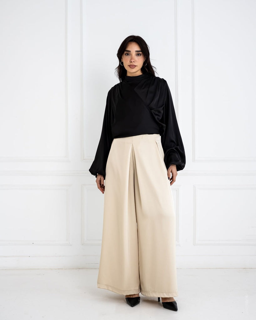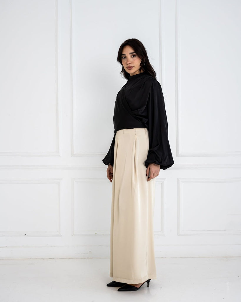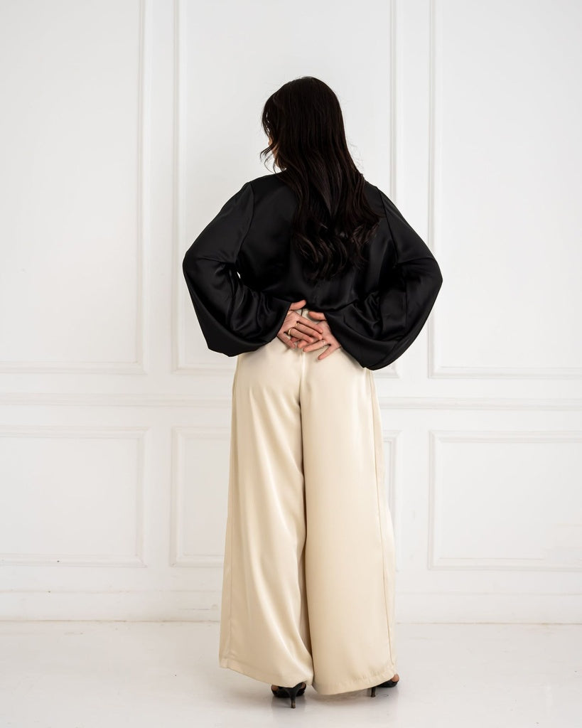 The WRAPPED CROPPED BLOUSE-BLACK features a stylish and versatile design that combines a wrap-around front with a cropped length. This unique blouse offers a sophisticated look that can easily be dressed up or down for any occasion. Elevate your wardrobe with this must-have piece.