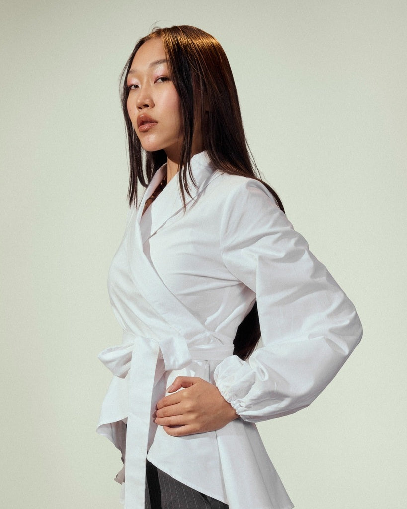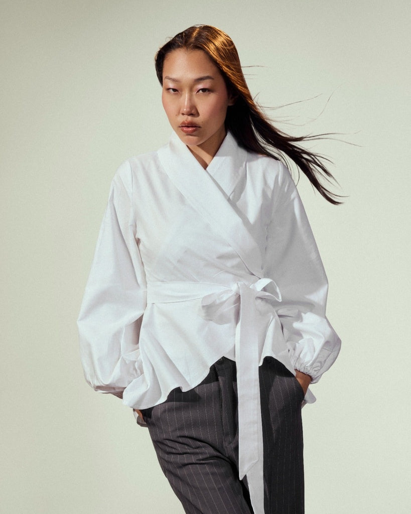 PLAIN WRAPPED BLOUSE-WHITE - is backordered and will ship as soon as it is back in stock.