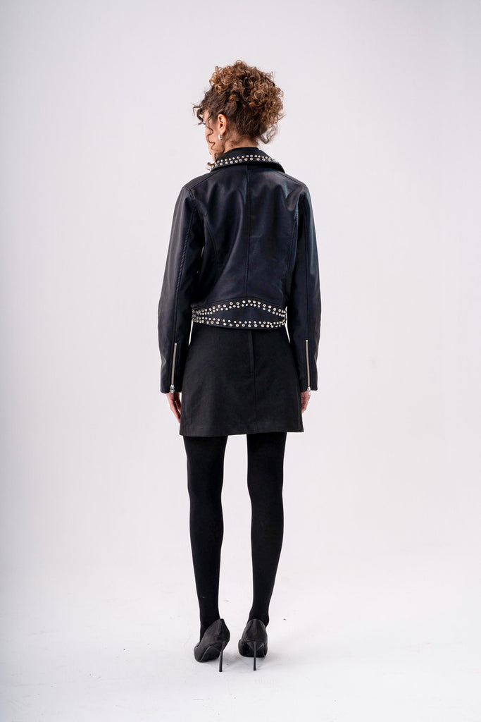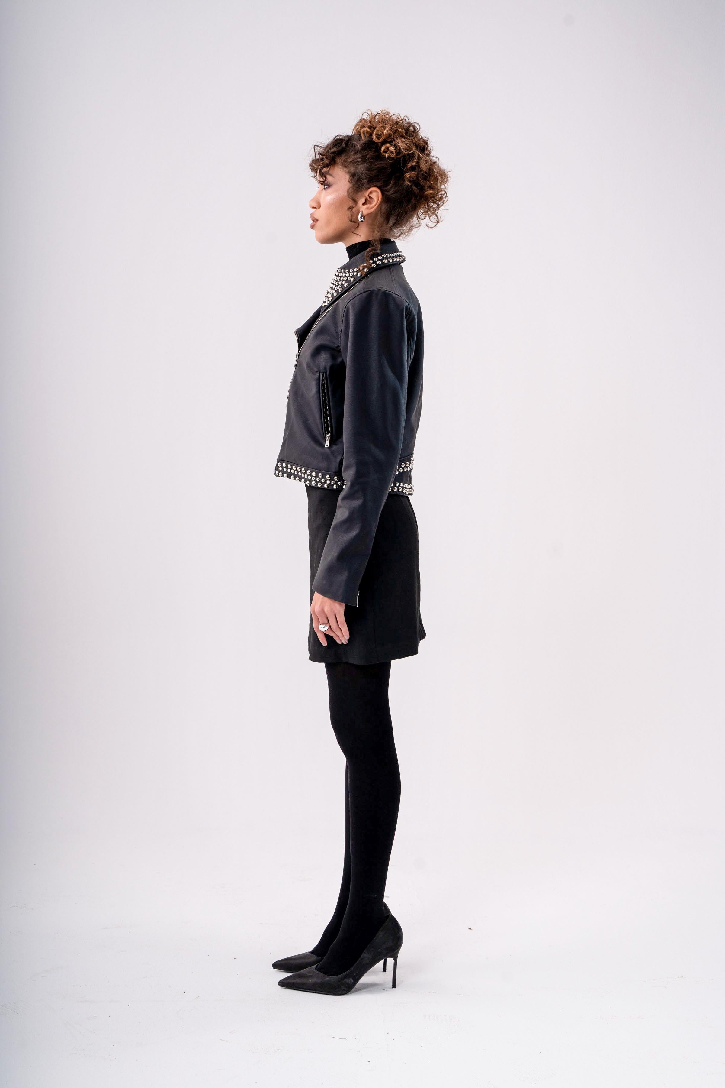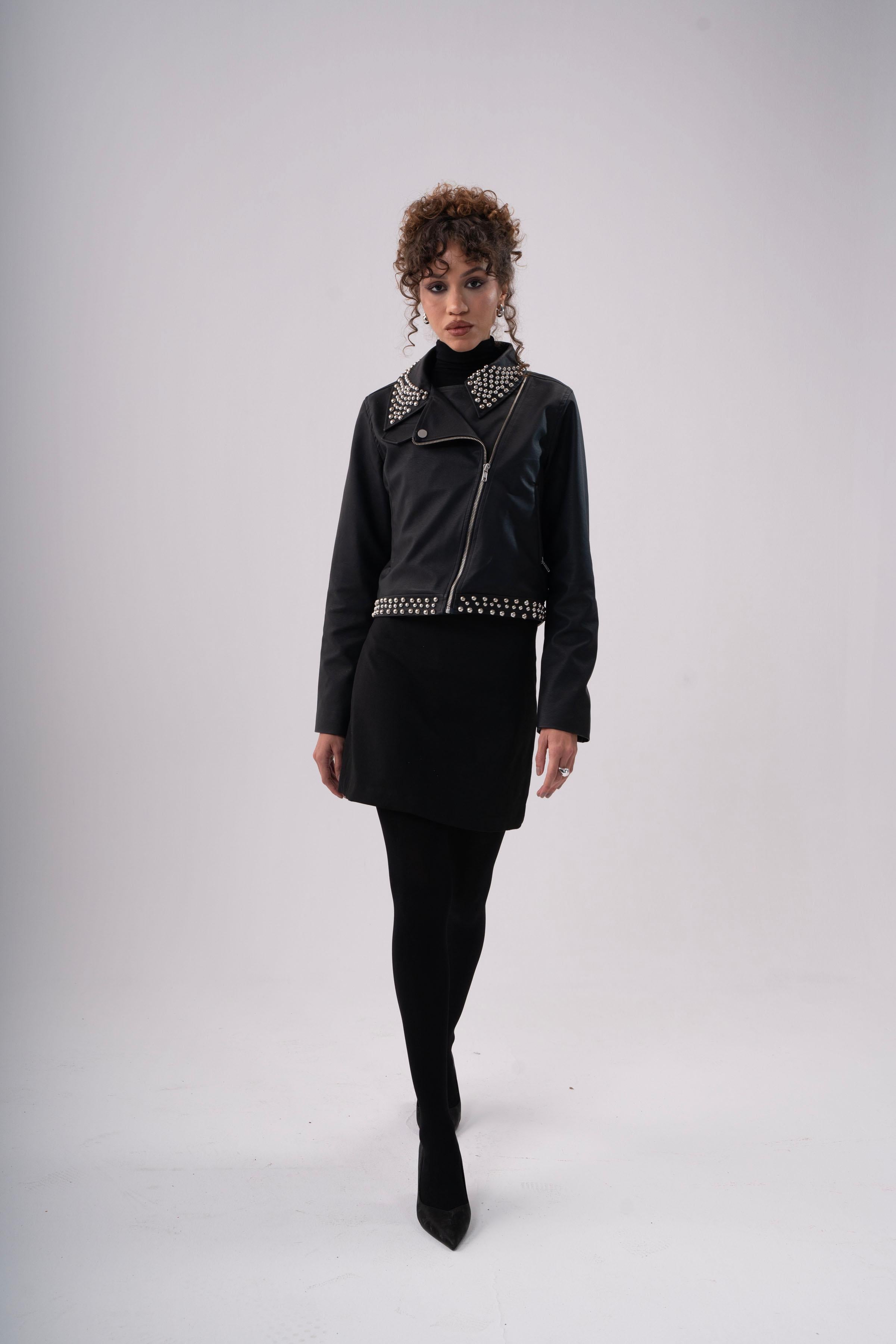 STUDDED CROPPED LEATHER JACKET -BLACK - is backordered and will ship as soon as it is back in stock.