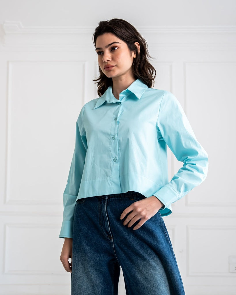 PLAIN CROPPED POPLIN SHIRT-GENZARY