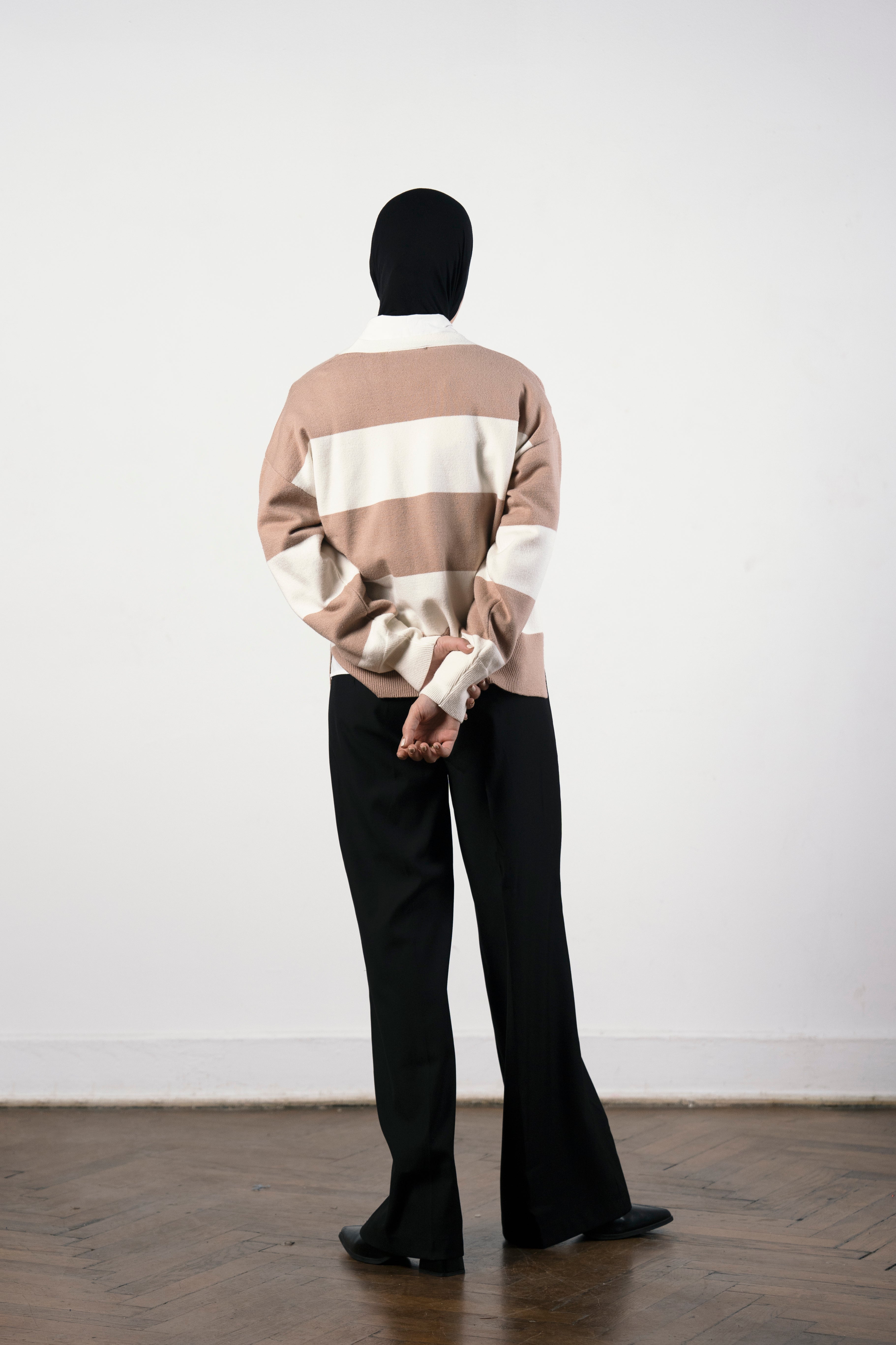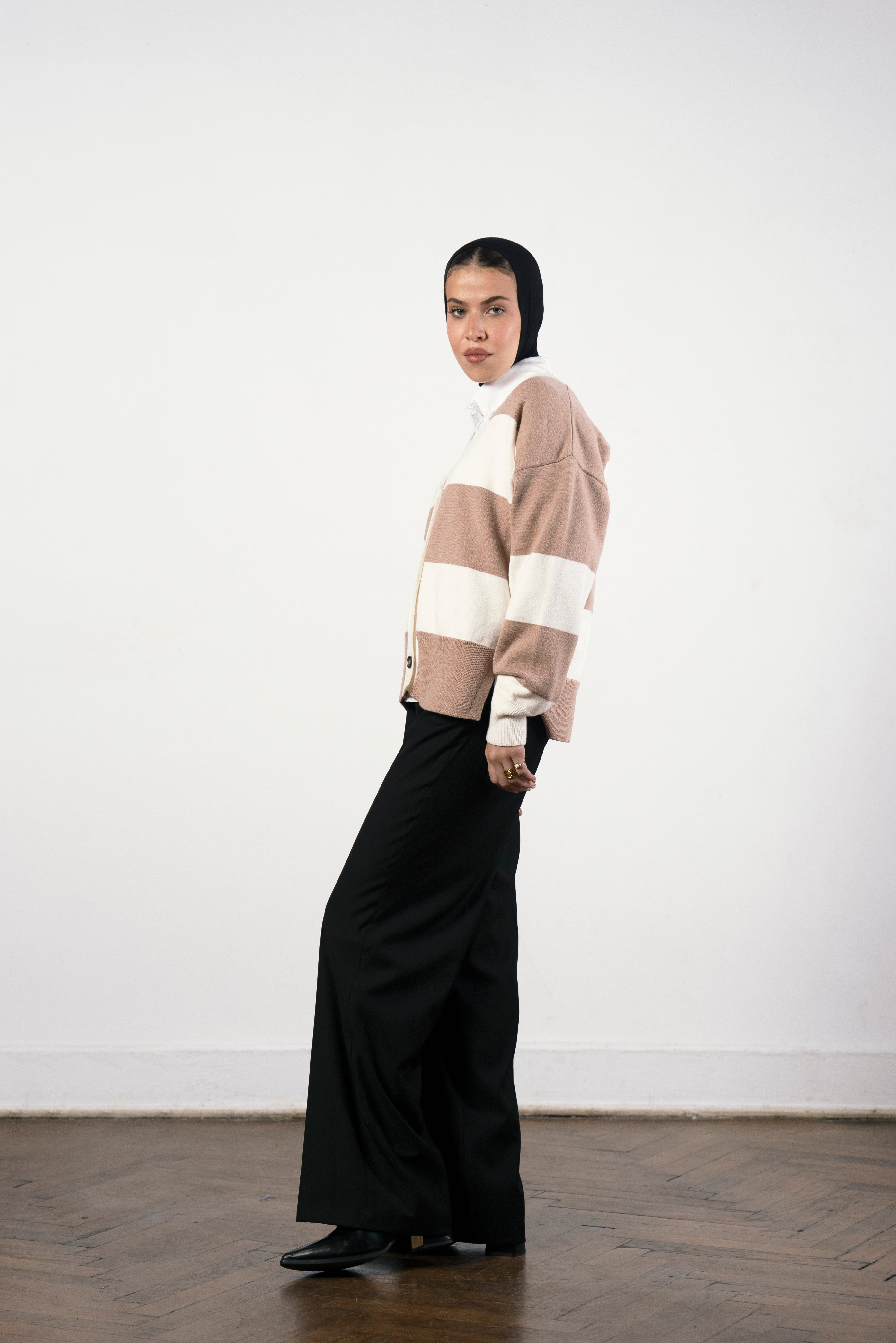 STRIPPED KNIT SHORT CARDIGAN -BEIGE - is backordered and will ship as soon as it is back in stock.