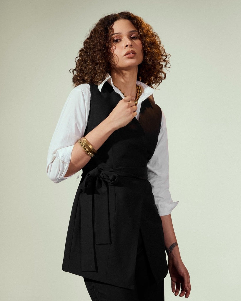WRAPPED LONG VEST-BLACK - is backordered and will ship as soon as it is back in stock.