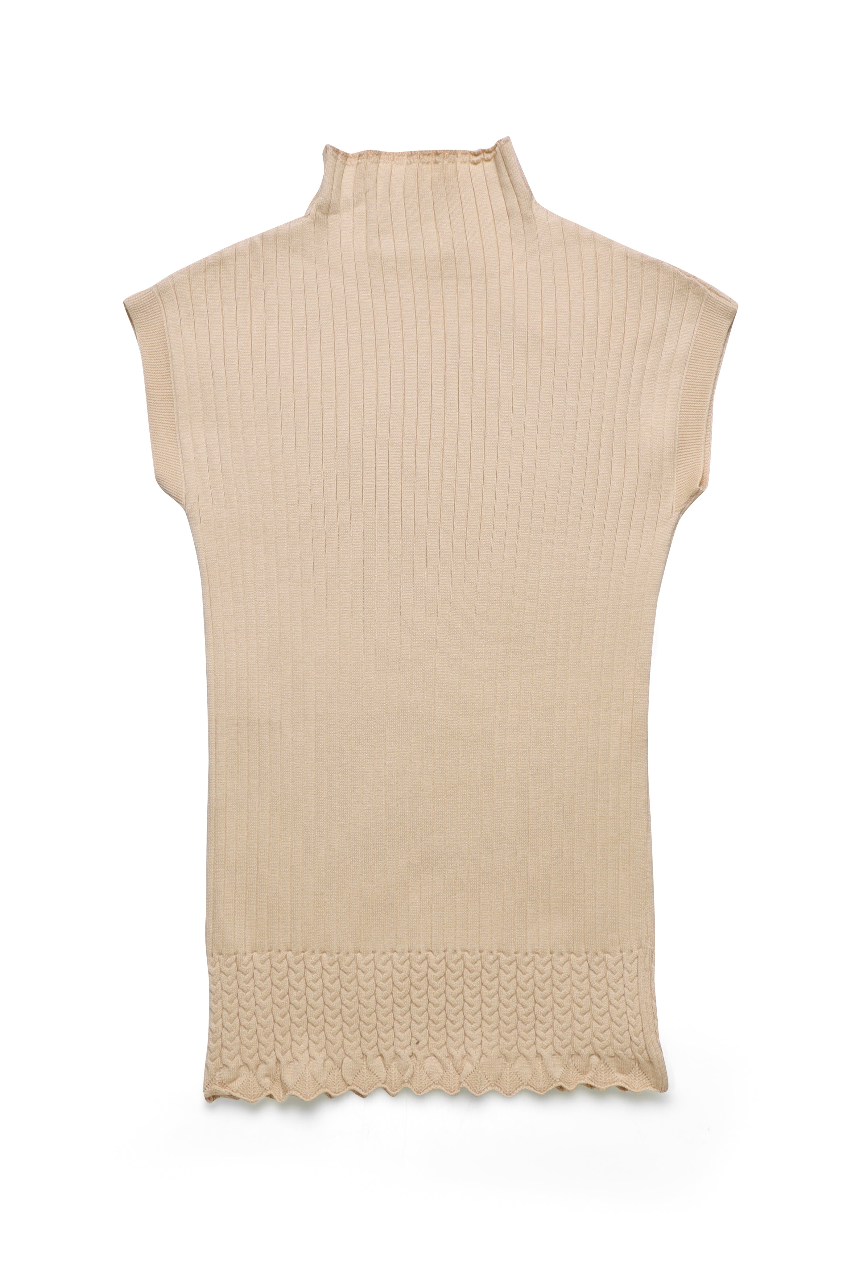 SLEEVELESS RIBBED KNIT TOP - CAFE