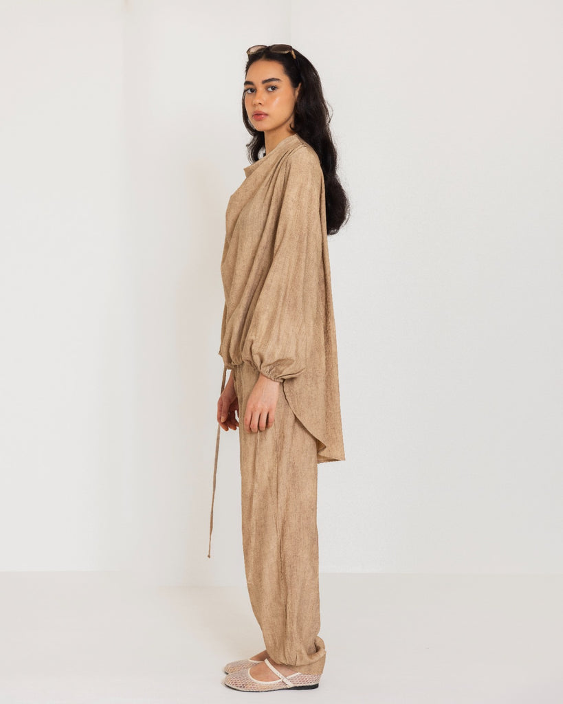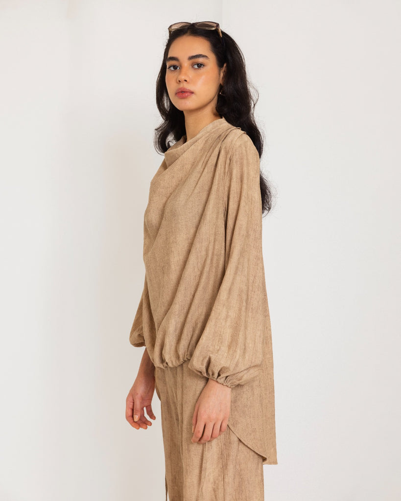 DRAPPED CRINKLE BLOUSE-CAFE - is backordered and will ship as soon as it is back in stock.