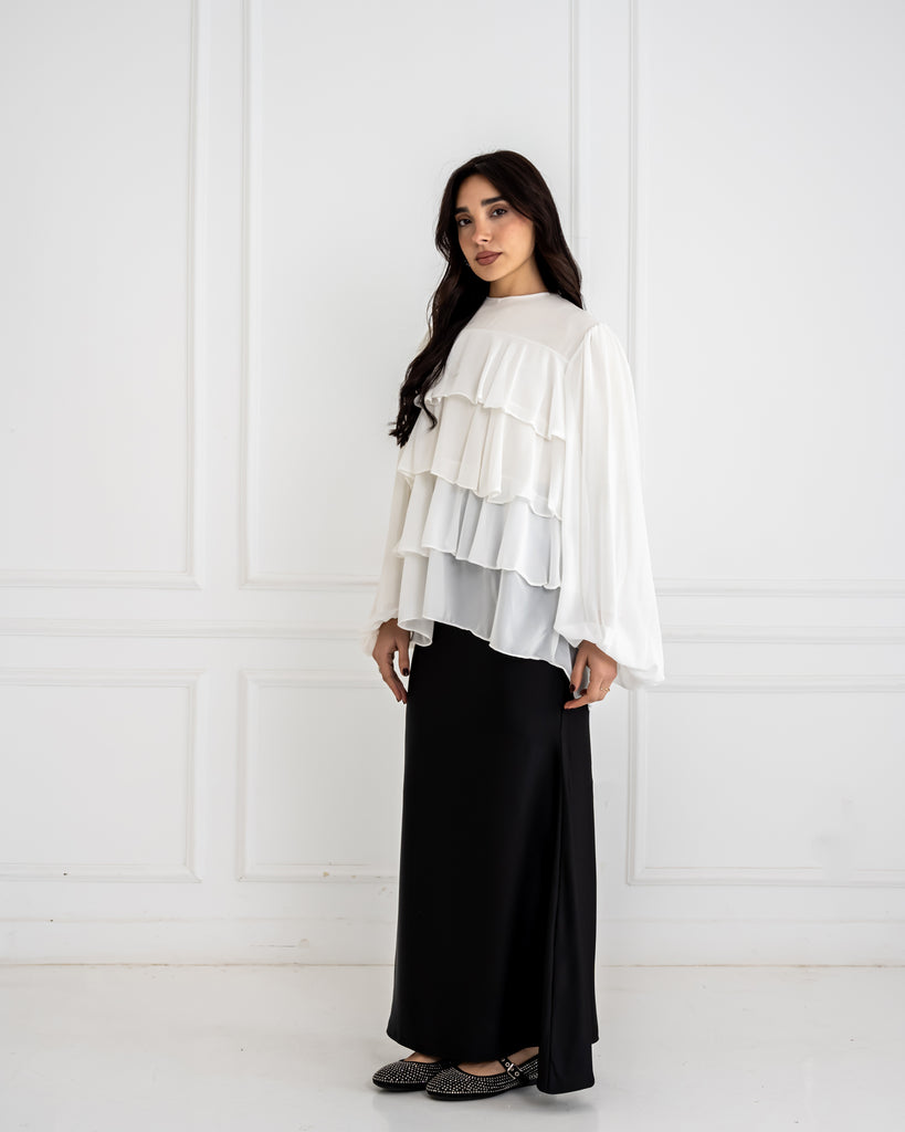 RUFFLE CHIFFON BLOUSE -WHITE