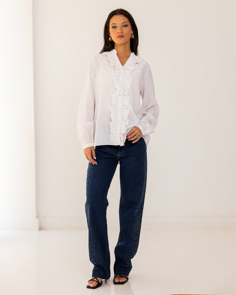RUFFLE SHIRT-OFF WHITE