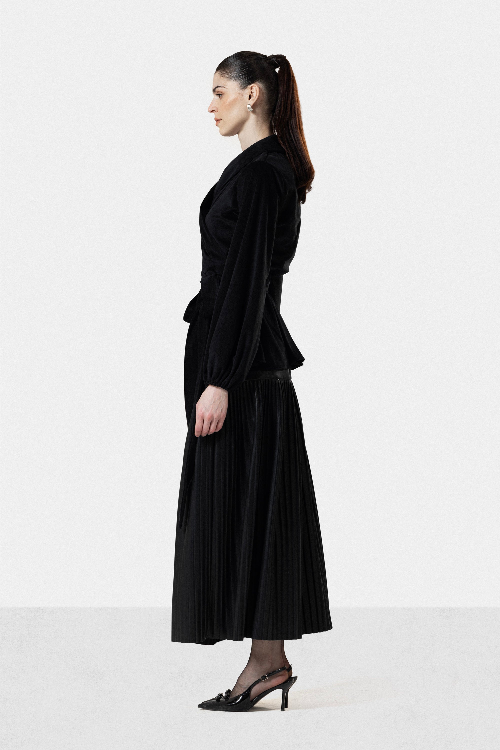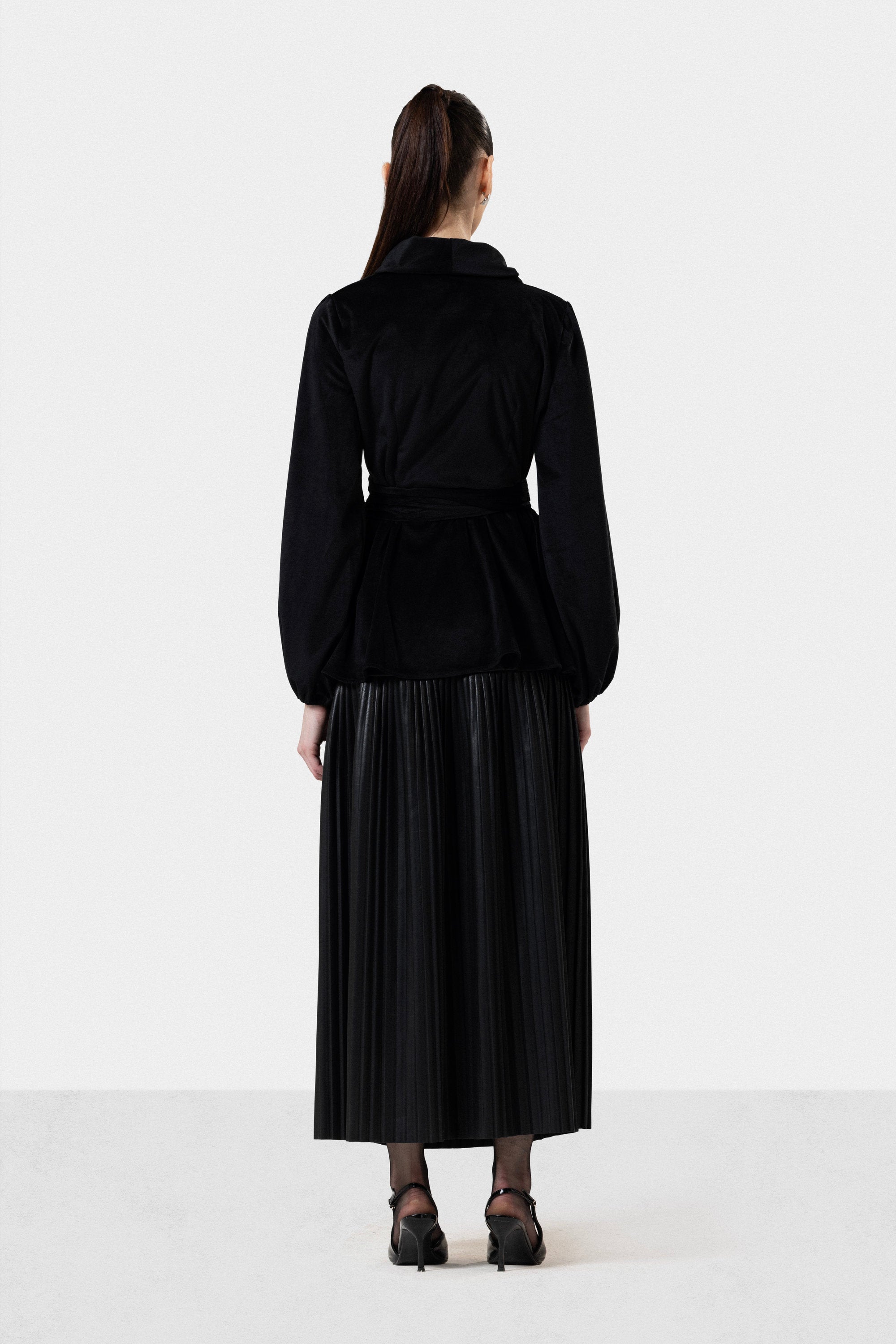 Discover luxurious sophistication with this new velvet tie wrap blouse in Black—an essential winter addition to your collection. The sumptuous velvet fabric drapes beautifully while providing warmth and texture, creating an instantly elevated aesthetic. The signature tie wrap design allows for personalized styling, enabling you to adjust the fit and create flattering silhouettes that work with your unique proportions. The rich burgundy tone exudes timeless elegance and pairs seamlessly with both neutral and jewel-toned pieces. Ideal for layering under structured outerwear or wearing as a standalone statement piece during cooler months.