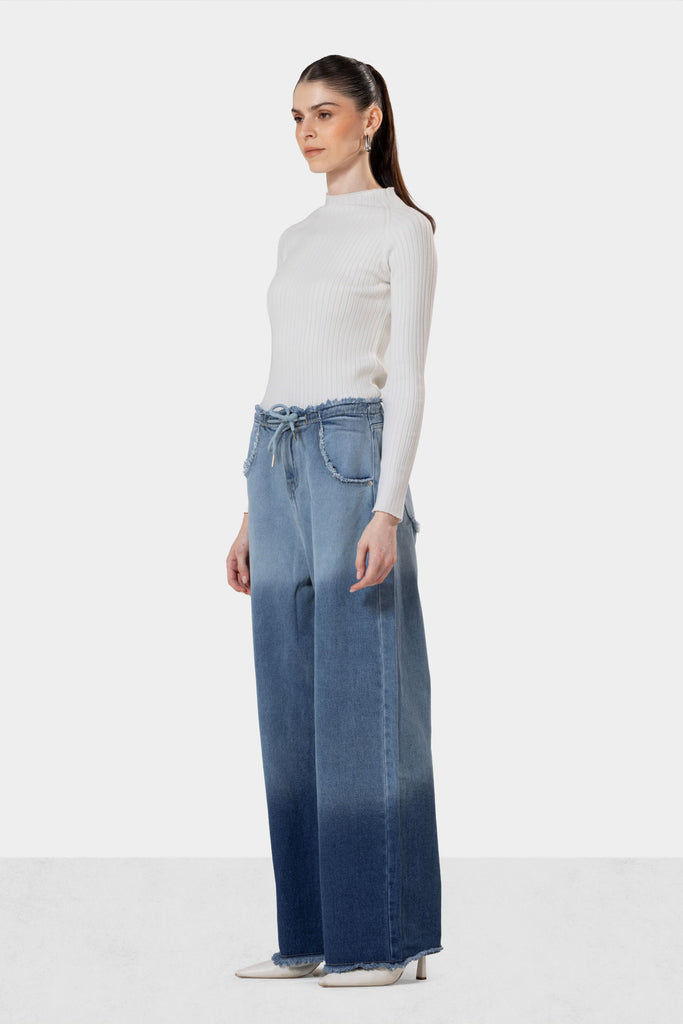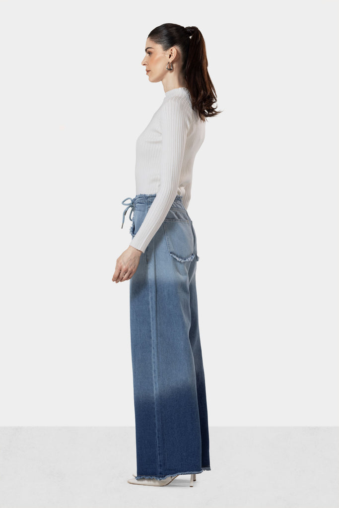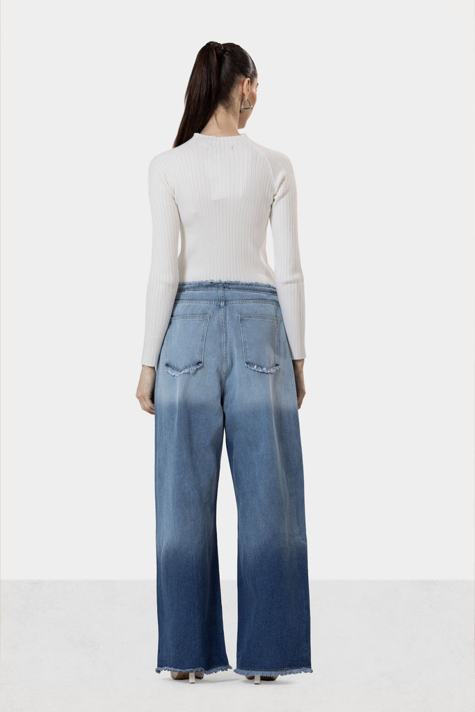 Crafted from premium denim with a soft washed effect, these wide pants offer a relaxed and effortlessly chic look. The fabric provides durability and comfort, maintaining its shape while giving a vintage-inspired texture and finish. Perfect for everyday wear with a stylish, laid-back feel.