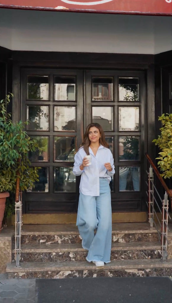 WIDE LEG DENIM PANTS -LIGHT BLUE