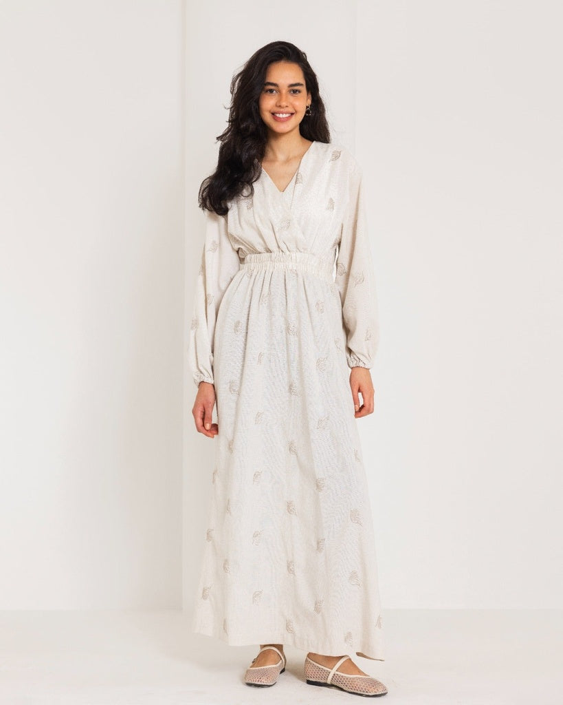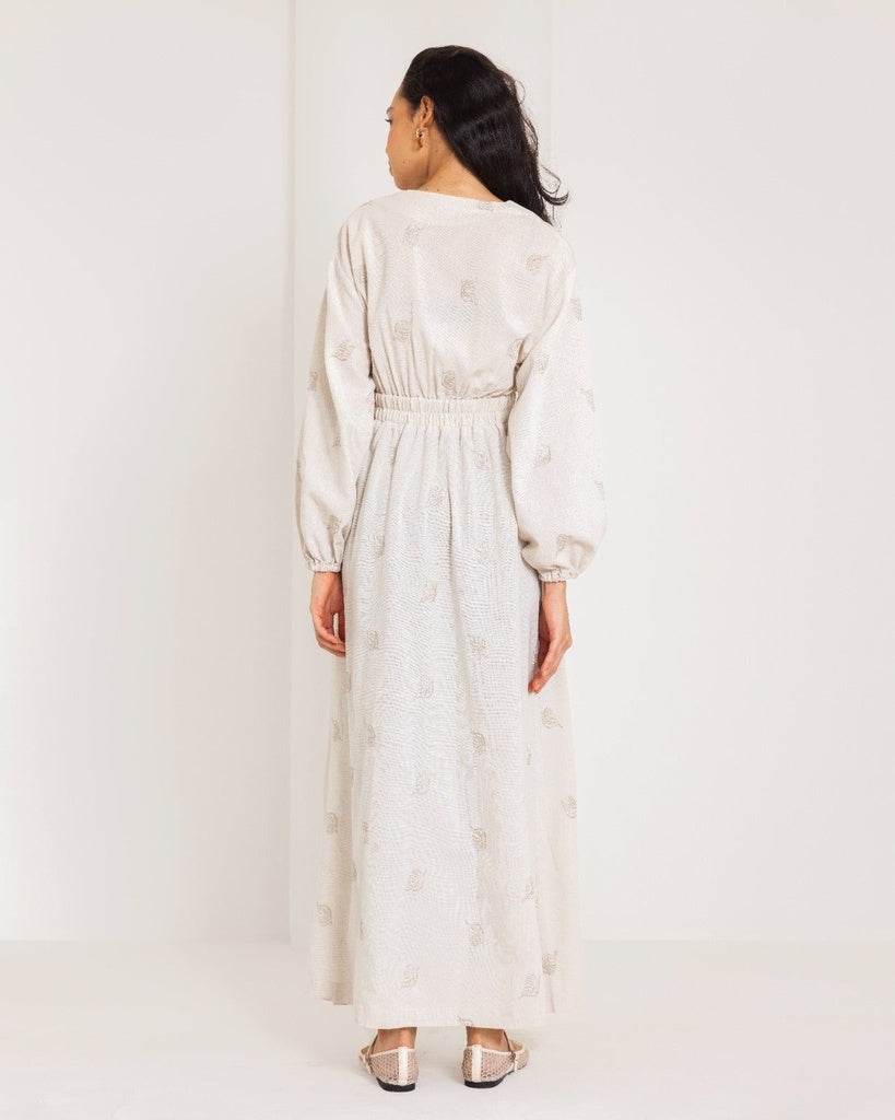 EMBROIDERED LINEN DRESS-BEIGE - is backordered and will ship as soon as it is back in stock.