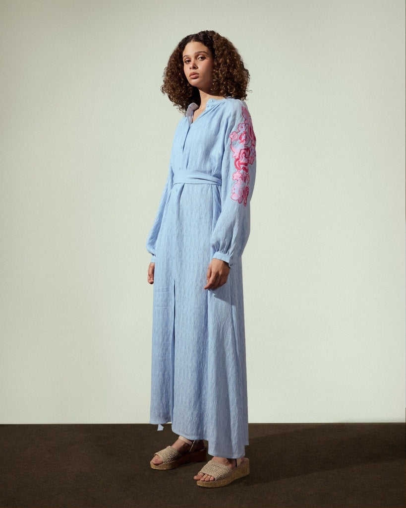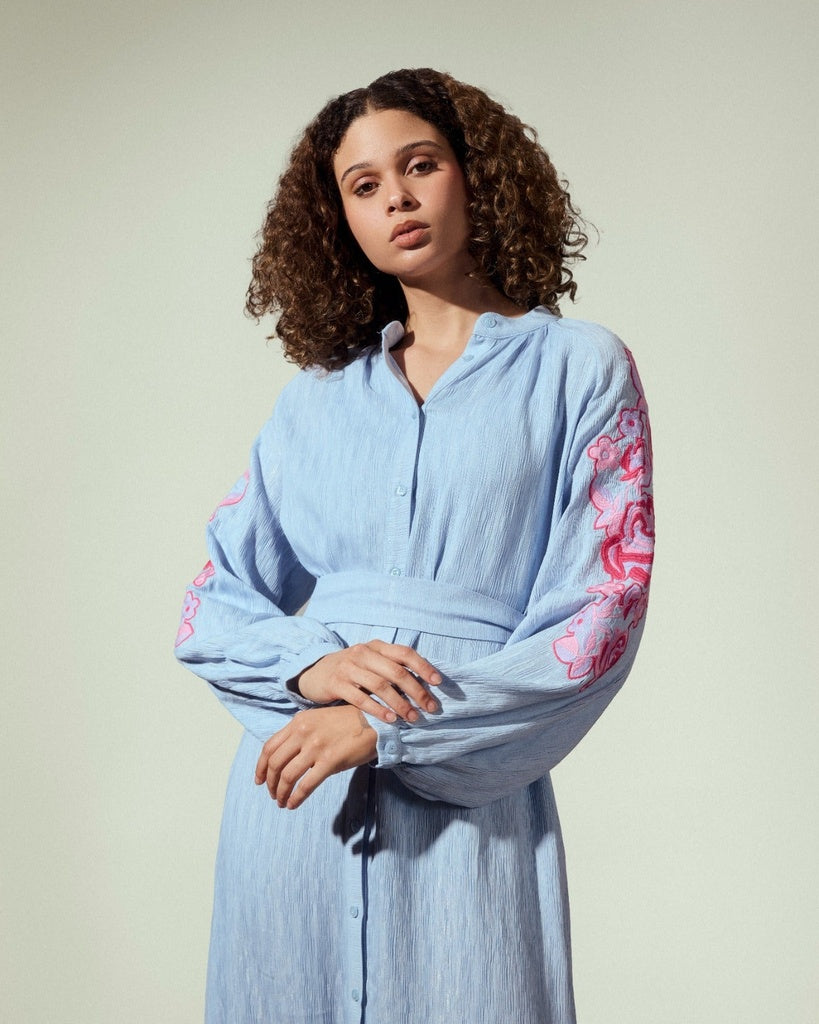 EMBROIDERY LONG SHIRT DRESS-BABY BLUE