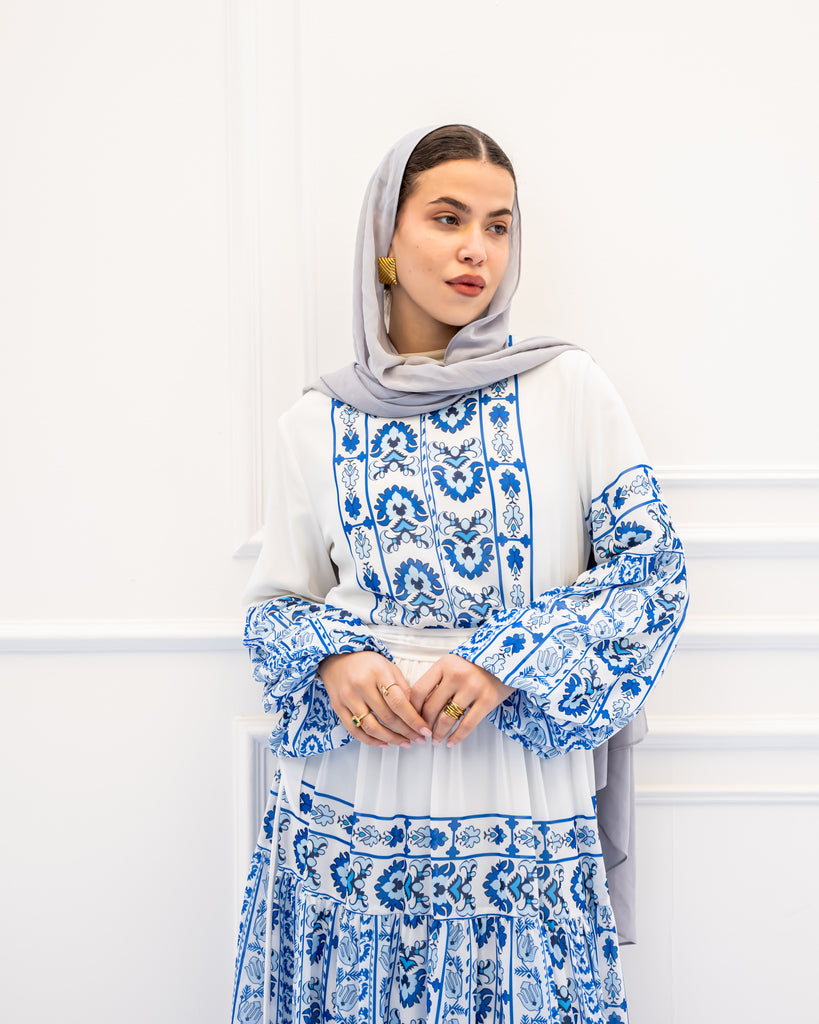 This elegant FLOWERED CHIFFON DRESS-BLUE features a delicate floral design on lightweight chiffon fabric. The flowy silhouette and soft material make this dress perfect for any occasion. The dress is available in a beautiful shade of blue, adding a touch of vibrancy to your wardrobe.