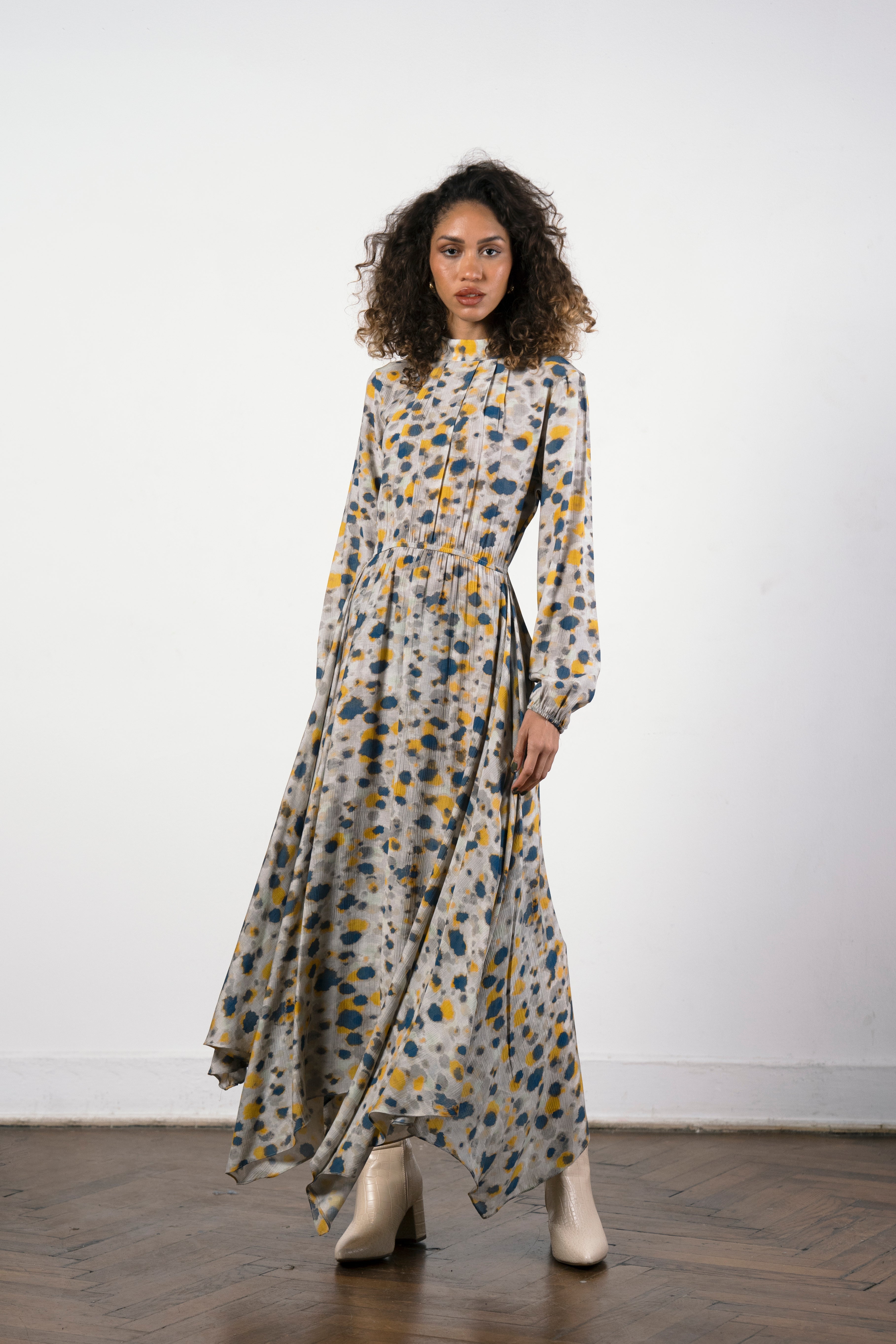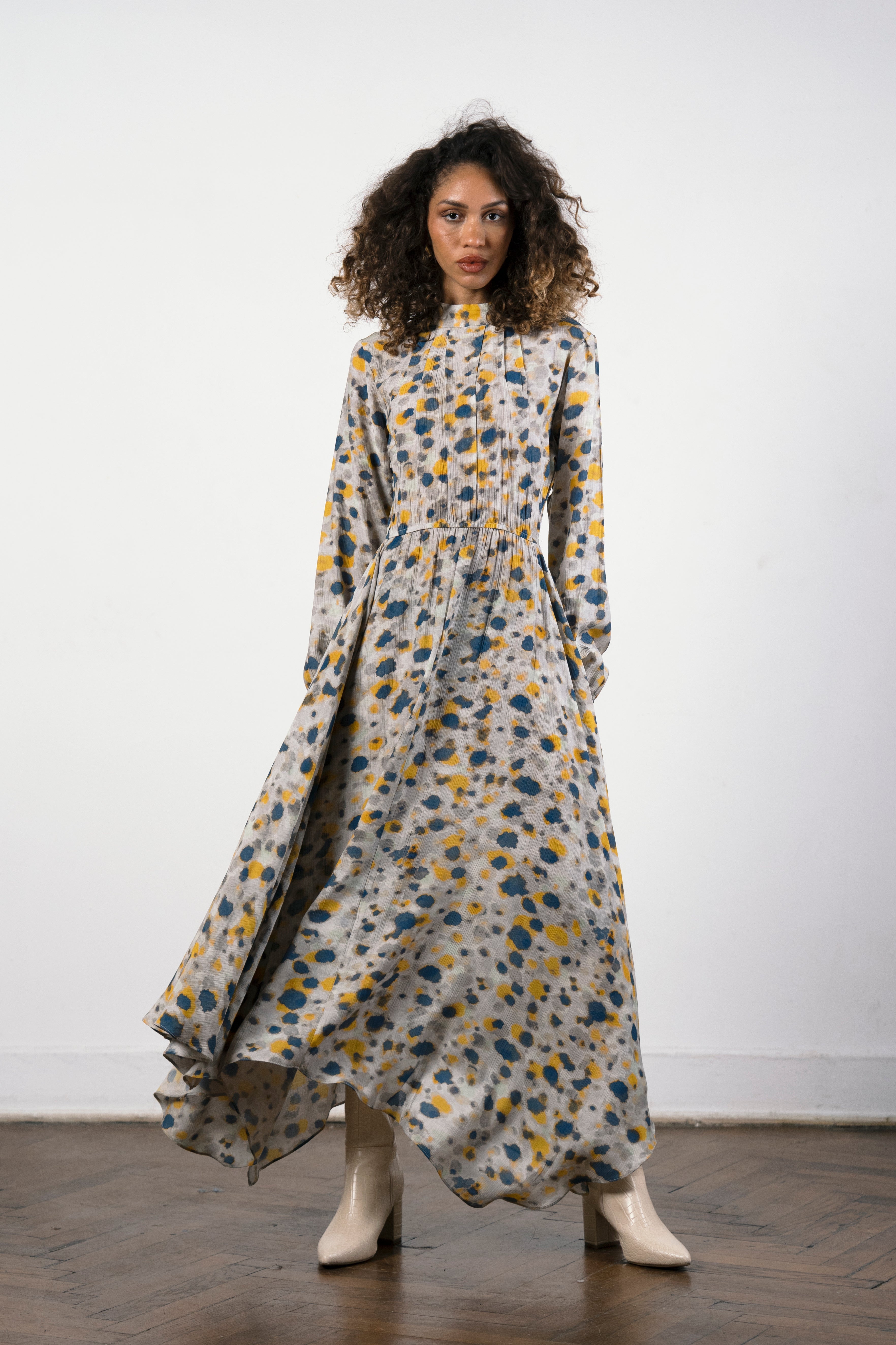 HIGH LOW PRINTED DRESS -YELLOW - is backordered and will ship as soon as it is back in stock.