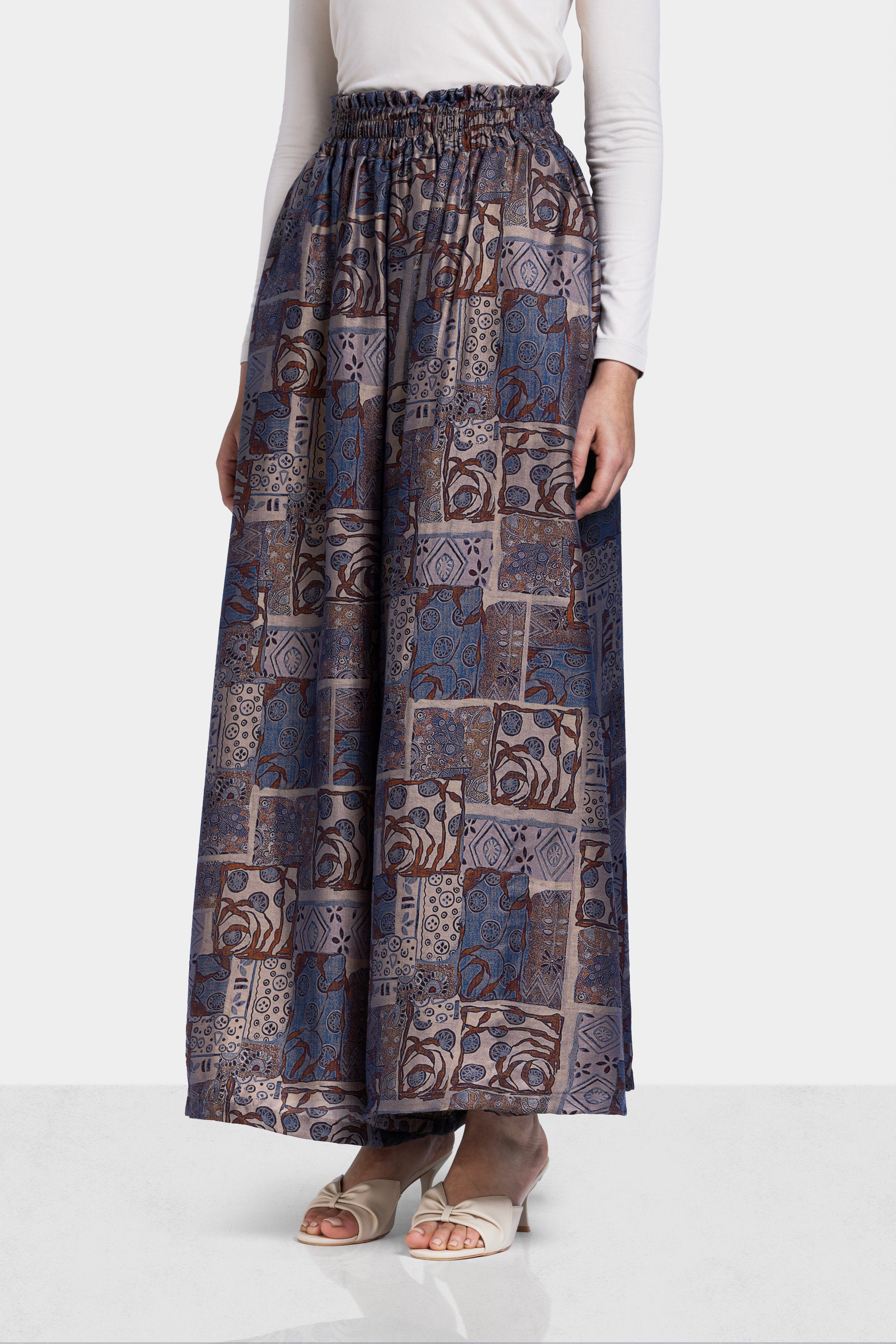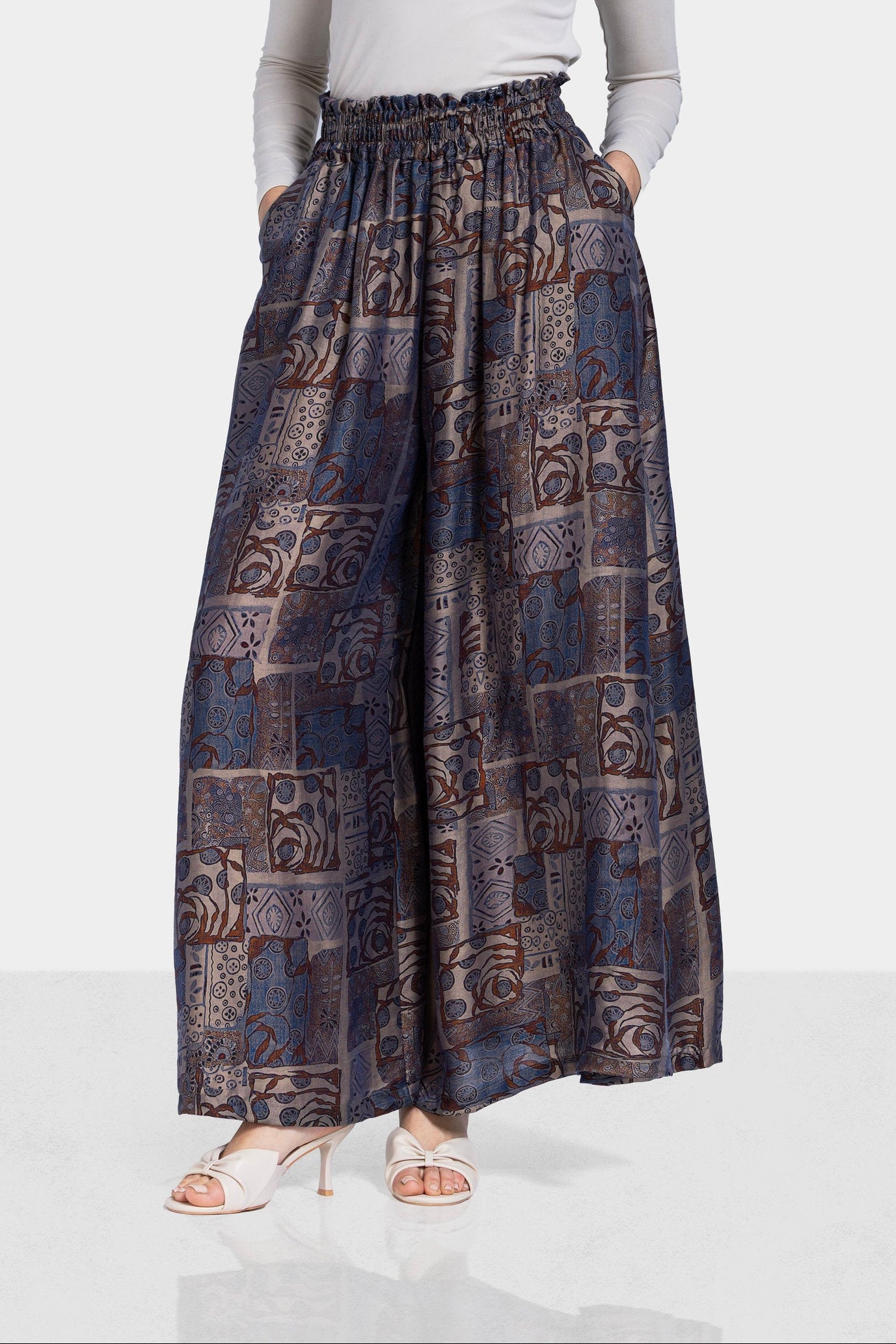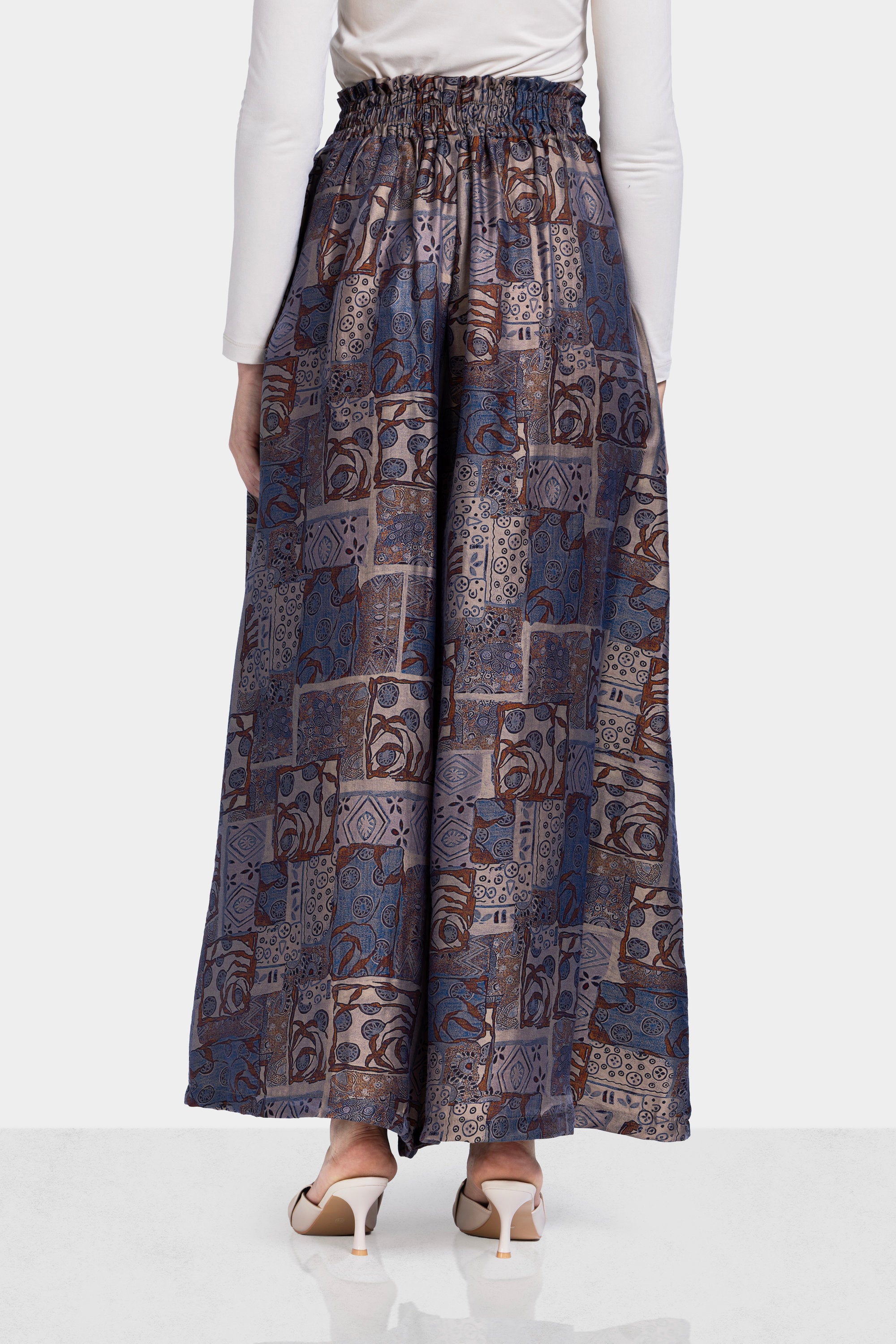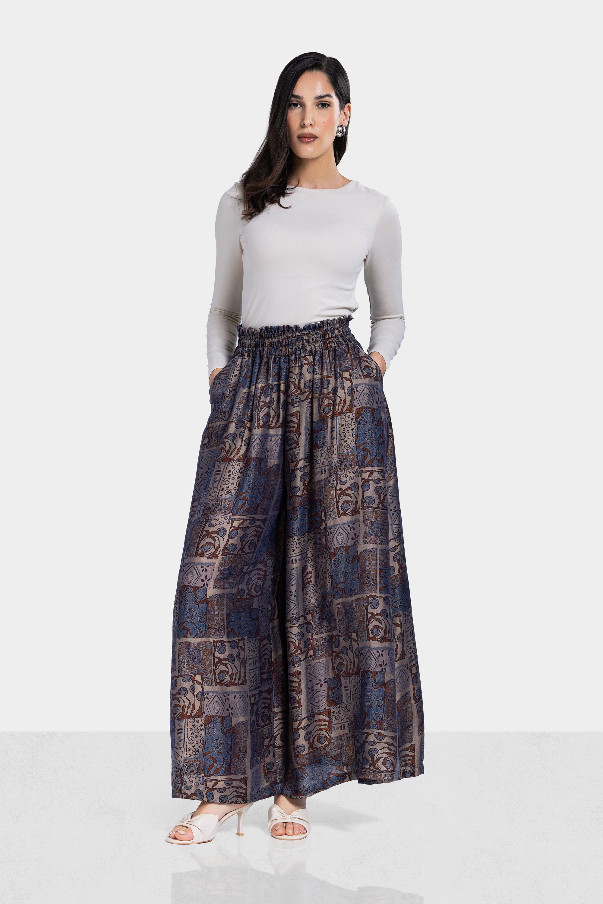 A flowing silhouette that blends artistic patterning with effortless comfort. The relaxed structure and soft drape create a distinctive look perfect for everyday elegance.