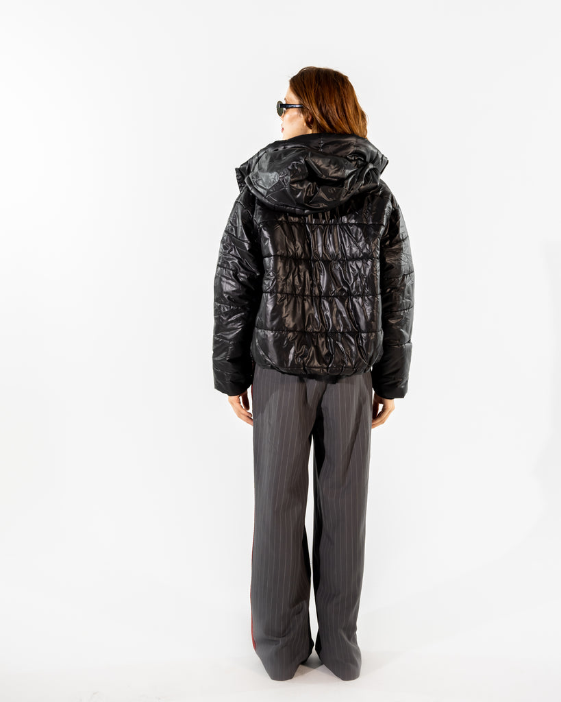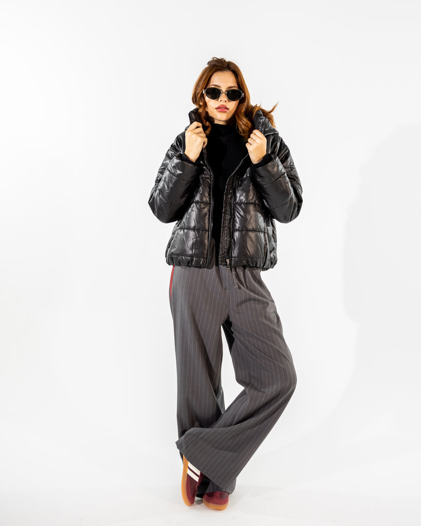 WIDE LEG PANTS WITH SIDE MARRON STRIPES -GRAY