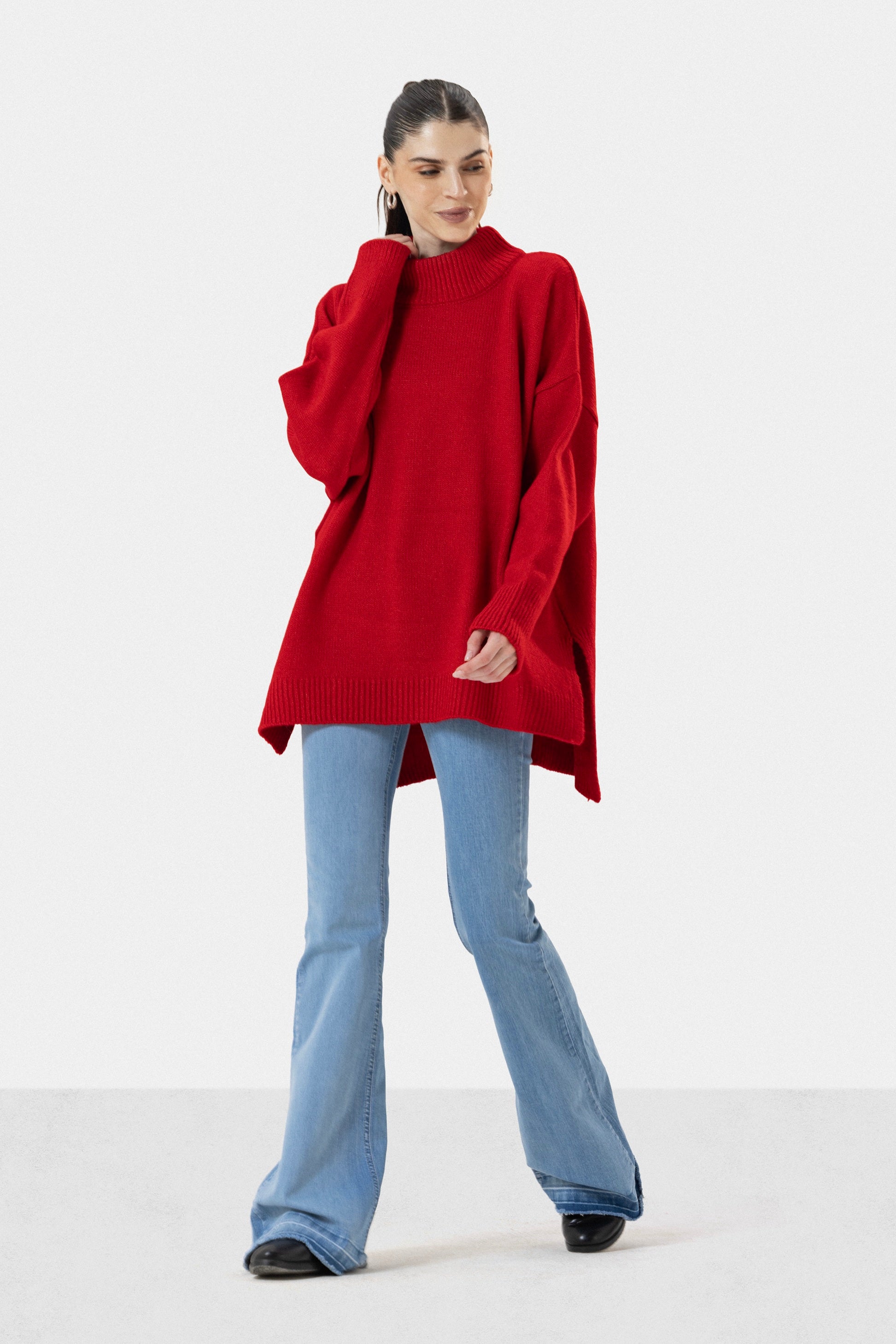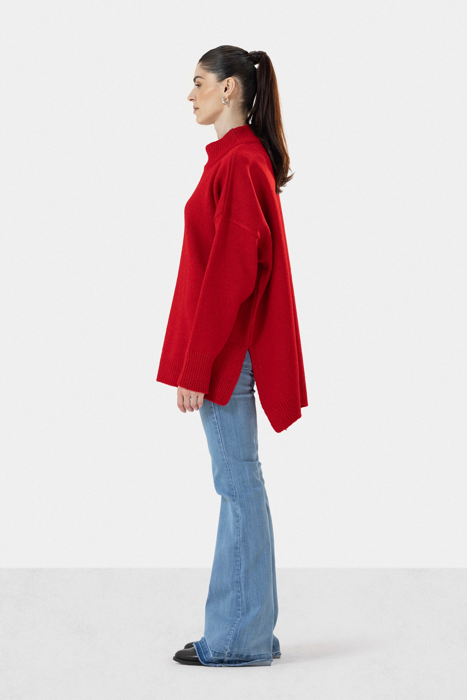 LONG KNIT PULLOVER - RED