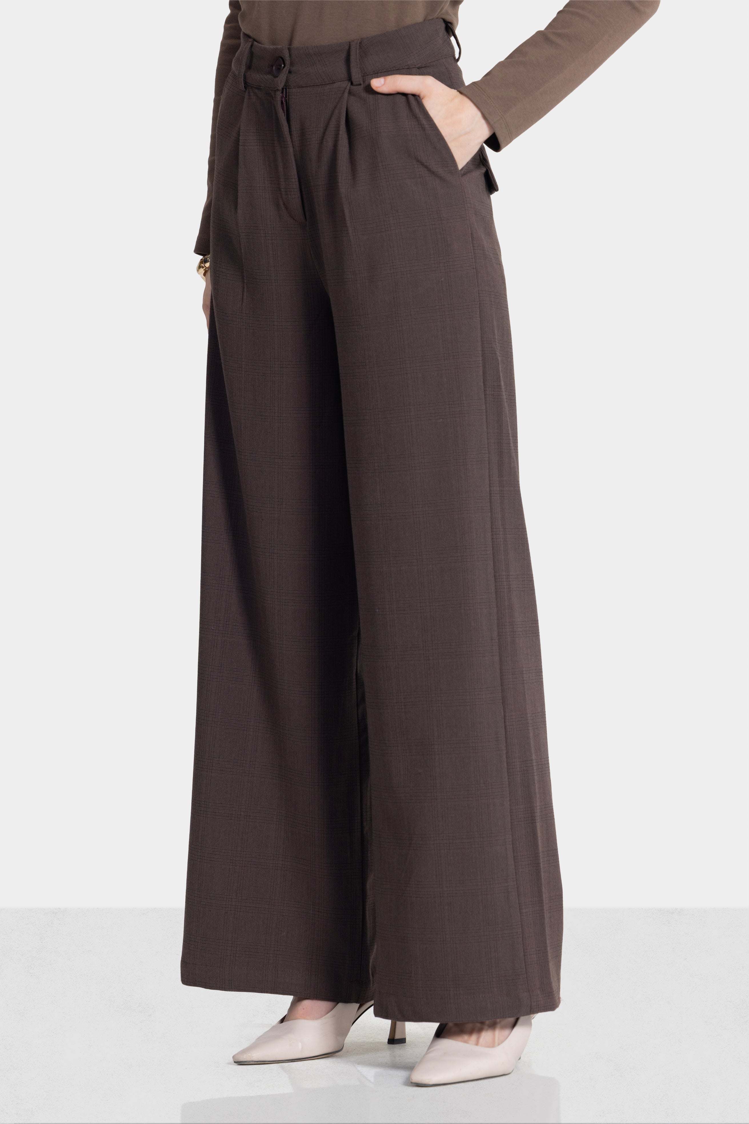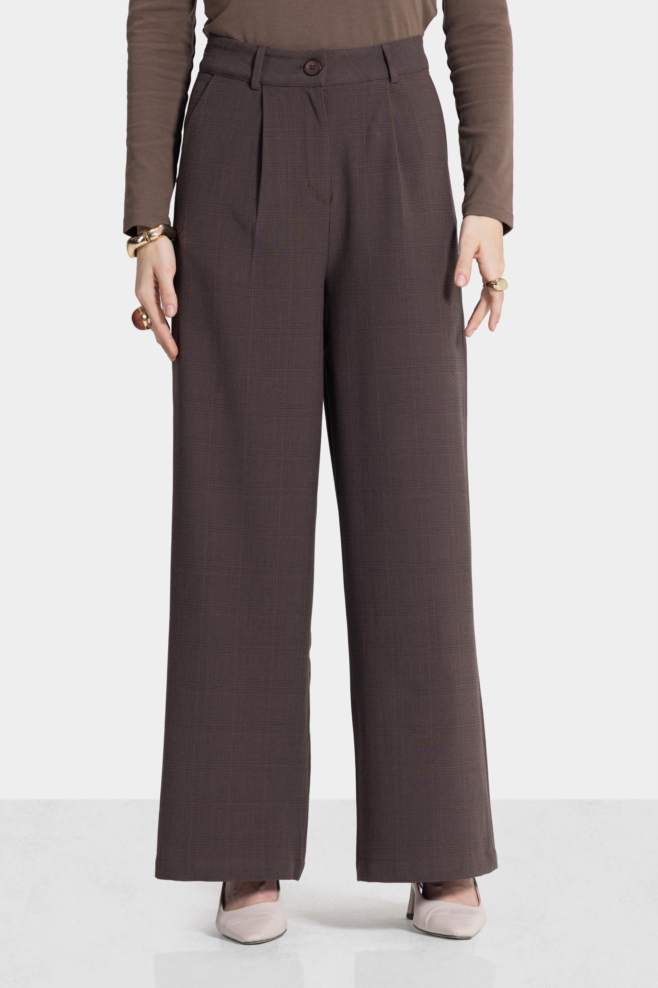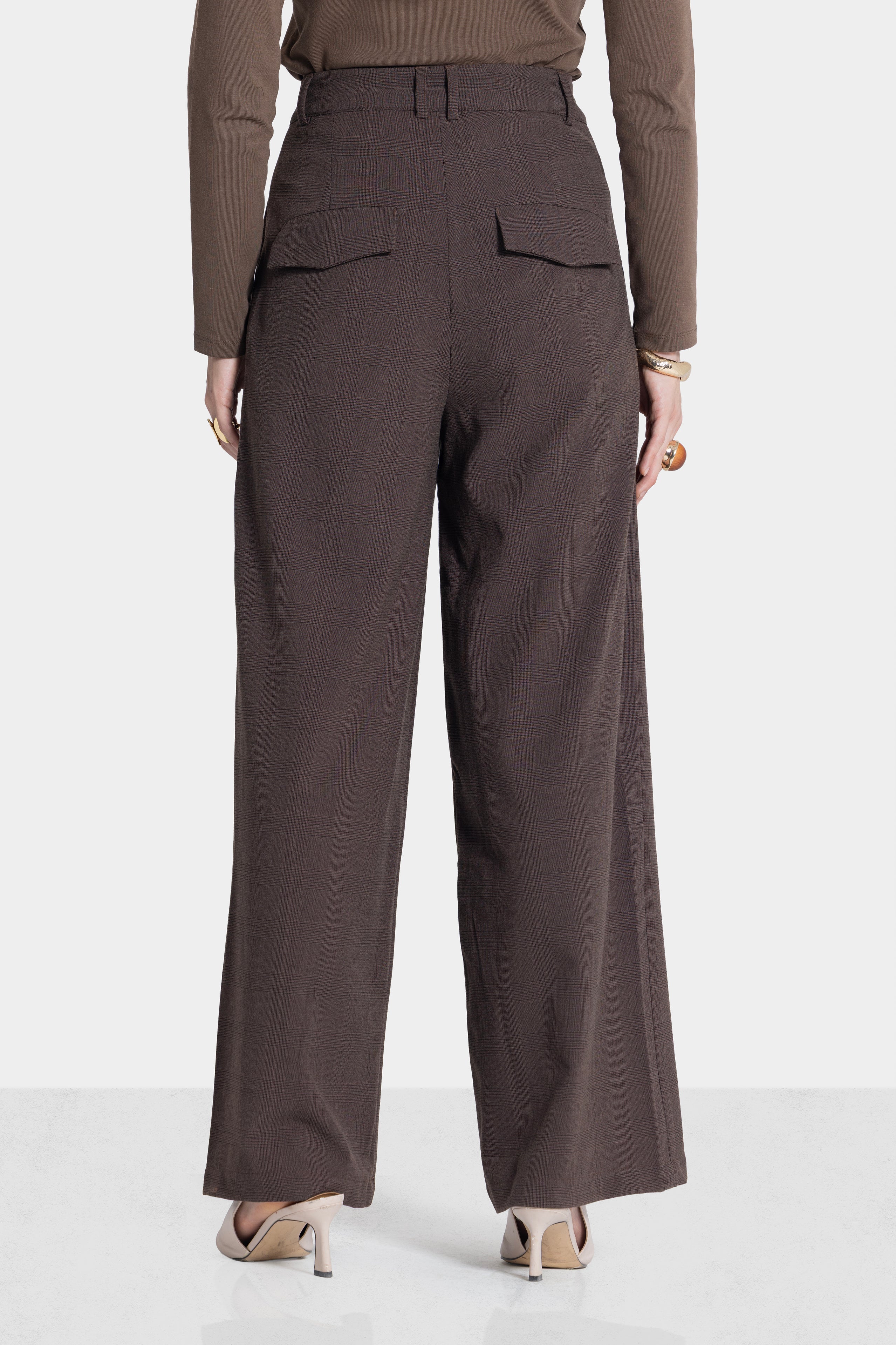 The Checkered Pants feature a relaxed wide-leg silhouette with a refined checkered pattern that adds a classic yet modern touch to your outfit. The adjustable waist ties allow for a comfortable, customizable fit while maintaining a tailored appearance. The soft drape of the fabric gives the pants a sophisticated flow, making them perfect for both casual and smart styling.